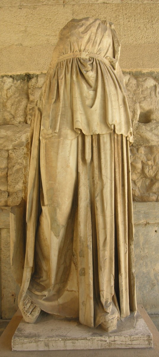 Ο.Π.: Αυτές οι παρατηρήσεις βασίζονται στη γνώση. Για τον πέπλο, επειδή γνωρίζω… Δεν υπάρχει μάλλινος πέπλος στην αρχαϊκή εποχή. Επομένως, η Εκάτη, που φοράει αυτό τον πέπλο, δεν μπορεί να είναι αρχαϊκή. Αλλά θέλουν να το κάνουν να μοιάζει με αρχαϊκό, οπότε του προσθέτουν κάτι απολήξεις που θυμίζουν αρχαϊκούς χιτώνες και αρχαϊκά λοξά ιμάτια, τέτοια πράγματα, οπότε παίρνει μια επίφαση αρχαϊκότητος, ας πούμε.