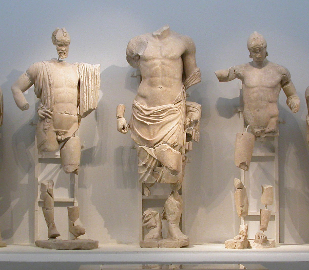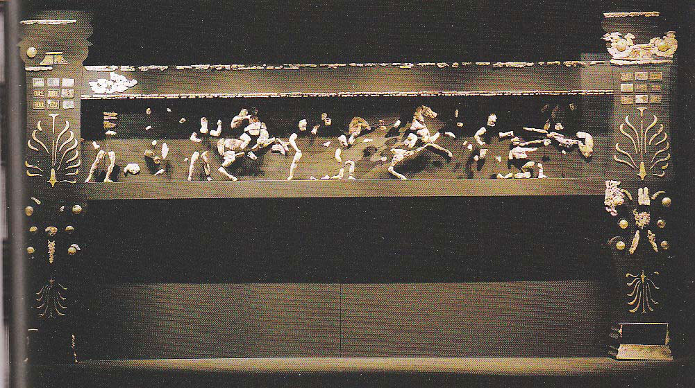 Ο.Π.: Νομίζω με τον Παρθενώνα, εκεί το βλέπουμε πρώτη φορά, στη ζωφόρο. Για το ανατολικό αέτωμα υποθέσεις κάνουμε, η ζωφόρος όμως τους έχει.