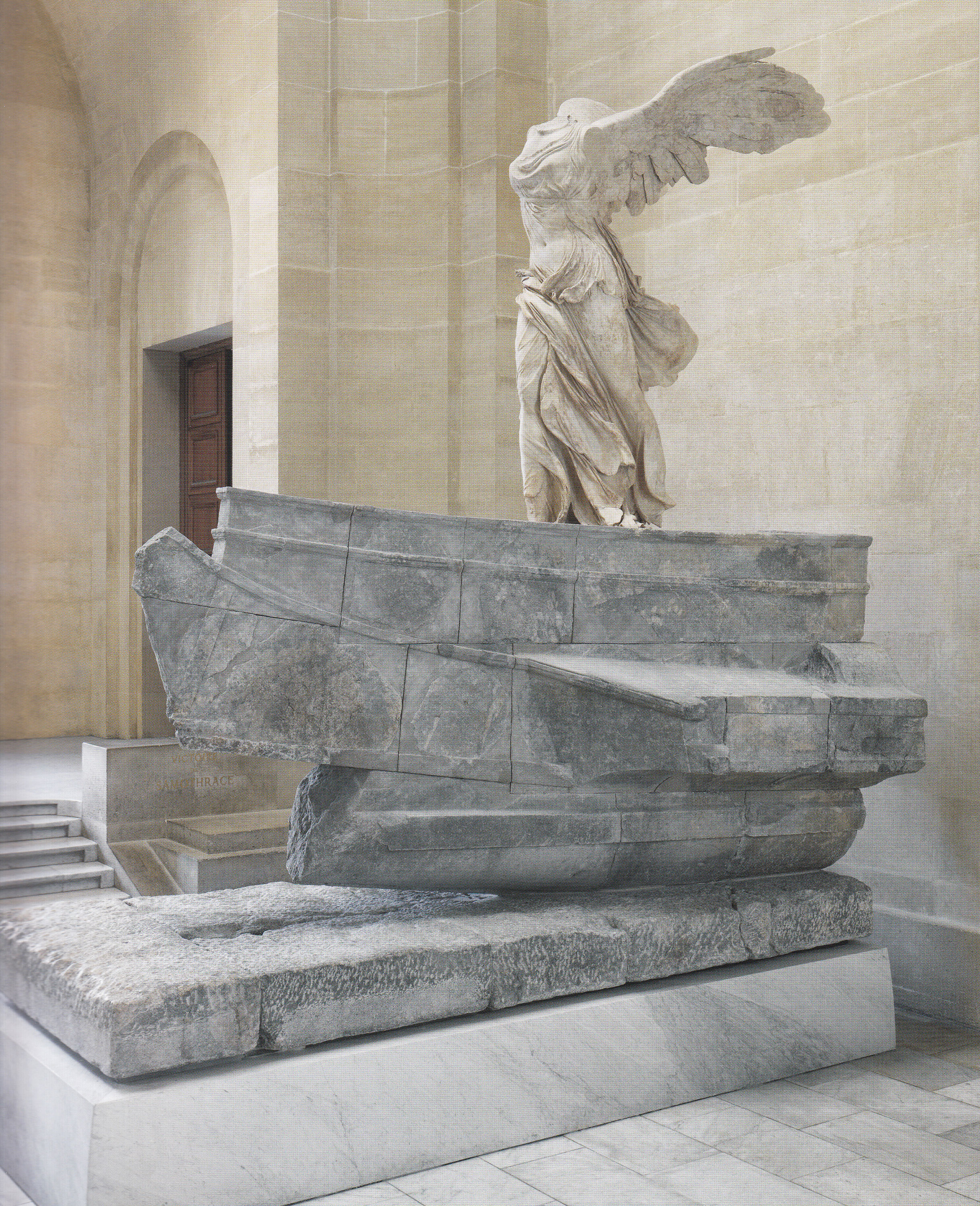 Ο.Π.: Όχι, νομίζω ότι αυτή η προσέγγιση δεν είναι μόνο δική μου. Εγώ το κάνω κατ’ εξοχήν, δηλαδή προσπαθώ να εντάξω ένα έργο στην ιστορική στιγμή. Πρώτον πρέπει να το χρονολογήσουμε – άμα δεν το χρονολογήσουμε, δεν κάνουμε τίποτα. Εάν δεν γνωρίζουμε τη χρονολόγηση, δεν έχει αξία η περαιτέρω προσπάθεια. Εάν όμως μπορούμε, έστω και με κάποια προσέγγιση 10-20 ετών, να το χρονολογήσουμε και ξέρουμε πού βρέθηκε, πρέπει να το εντάξουμε στην ιστορική περίοδο και να δούμε τι γινόταν σ’ αυτόν το χώρο ιστορικά. Ειδικά για τη Σαμοθράκη, γνωρίζουμε πάρα πολύ καλά ότι στην περίοδο των δύο τελευταίων Μακεδόνων βασιλέων, δηλαδή του Φιλίππου του Ε’ και του γιου του, του Περσέα, η Σαμοθράκη ήταν υπό μακεδονική επιρροή και δεν μπορούσε άλλο κράτος να επέμβει εκεί. Η Ρόδος ήταν ένα χωριστό κράτος. Δεν έχουμε δηλαδή κρατικές αναθέσεις σ’ ένα χώρο επιρροής της Μακεδονίας. Στην αρχή εγώ σκέφτηκα μήπως το έργο αυτό ήταν ανάθεση Μακεδόνων και μάλιστα έχει διατυπωθεί αυτή η υπόθεση από την Bruni Ridgway, ότι ανατέθηκε από τους βασιλιάδες της Μακεδονίας, με το ίδιο σκεπτικό: ποιος μπορεί να πάει εκεί; Για τη Ρόδο θα ήταν κρατική αυτή η ανάθεση, δεν θα έκανε ιδιώτης τόσο μεγάλο έργο. Όμως οι Μακεδόνες δεν είχαν νικήσει σε καμία ναυμαχία και αυτό το έργο είναι καθαρά για μια ναυτική νίκη ή, έστω, μια νίκη του στόλου. Και δεν έχουμε τέτοια δείγματα. Ιδίως ο Περσέας, ο τελευταίος βασιλιάς της Μακεδονίας, ενώ είχε στόλο, δεν είχε λάβει μέρος σε καμία ναυμαχία. Επειδή η χρονολόγηση ταιριάζει πολύ με το βωμό της Περγάμου –την περίοδο που γινόταν ο βωμός της Περγάμου έχουμε την κατάκτηση της Μακεδονίας από τους Ρωμαίους–, σκέφτηκα ότι, εφόσον είναι κρατική η ανάθεση, πρέπει να έχει γίνει από ένα μεγάλο κράτος και, στην περίπτωσή μας, το μόνο κράτος που μπορούσε να επέμβει εκεί ήταν η Ρώμη, η οποία κατέλαβε τη Μακεδονία και τη Σαμοθράκη. Γνωρίζουμε ότι οι Ρωμαίοι ήδη είχαν κάνει ένα μεγάλο ανάθημα στους Δελφούς –για τη νίκη τους εναντίον της Μακεδονίας–, το οποίο σώζεται. Το αναφέρει και ο Παυσανίας και το έχουμε, είναι στο Μουσείο Δελφών, το ανάθημα του Αιμιλίου Παύλου. Σκέφτηκα ότι, παράλληλα με τη νίκη τους στην ξηρά, γιατί νίκησαν στη μάχη της Πύδνας, πιθανόν ο στόλος των Ρωμαίων, ο οποίος είχε πάει στο λιμάνι της Σαμοθράκης κι εκεί συνέλαβαν τον βασιλιά της Μακεδονίας, τον Περσέα, ο στόλος αυτός λοιπόν πιθανόν να έκανε αυτό το ανάθημα. Ούτως ή άλλως από το 168 π.Χ. και μετά οτιδήποτε μεγάλης κλίμακας αφιερώθηκε στη Μακεδονία ήταν φτιαγμένο με ρωμαϊκά χρήματα. Δεν ήταν δηλαδή«ρωμαϊκό» με την έννοια της τέχνης, ήταν «ρωμαϊκό» με την έννοια της χορηγίας, ότι ένα ήταν το κράτος πια, κι αυτό έπρεπε να είναι μόνο η Ρώμη, δεν μπορούσε να είναι άλλο. Έχουμε ιδιωτικά αναθήματα πολλά, αλλά ανάθημα τόσο μεγάλης κλίμακας πρέπει να είναι κρατικό. Και πρέπει να σας πω ότι η άποψη αυτή έγινε αποδεκτή από το Λούβρο, όχι επισήμως αλλά ο διευθυντής του Λούβρου άλλαξε την πινακίδα πλάι στο άγαλμα και έκανε και μια ομιλία εδώ στην Αθήνα και είπε ότι υπάρχει μια περίπτωση πράγματι να είναι ρωμαϊκή χορηγία. Με κάλεσε μάλιστα να μιλήσω για την ιδέα μου, ενώ ήταν ήδη δημοσιευμένη, και νομίζω ότι κάπου έχει κλονιστεί και πιστεύει ότι είναι δυνατό. Διότι, όπως σας είπα, η τέχνη είναι καθαρά ελληνική, απλώς τα χρήματα είναι ρωμαϊκά. Είναι, δηλαδή, ένα πολιτικό έργο το οποίο πλέον έρχεται από τους νικητές, οι οποίοι όμω