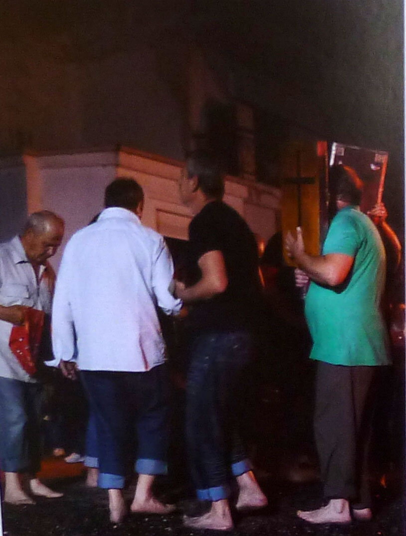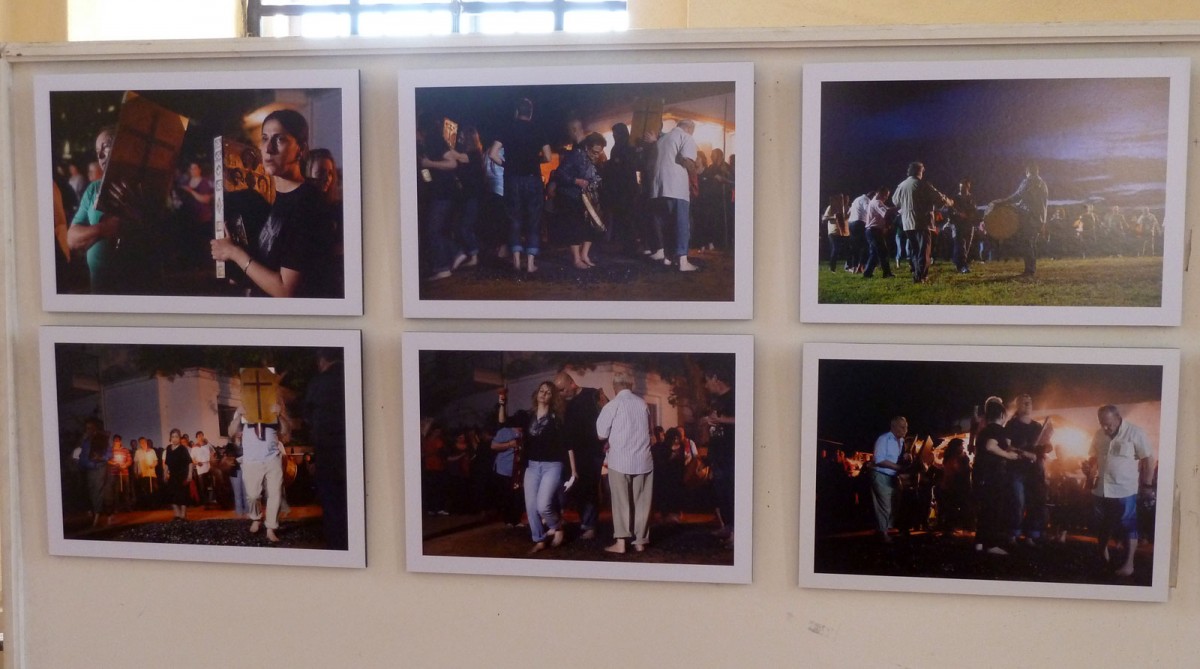 Οι εικόνες που εκτίθενται, όπως επισημαίνεται στο ίδιο σημείωμα, ελήφθησαν από το 2011 έως το 2014 στην Αγία Ελένη Σερρών και στον Λαγκαδά Θεσσαλονίκης και αποτελούν τμήμα πολύχρονης εργασίας του φωτογράφου με πρόθεση την αποτύπωση και την καλλιτεχνική απόδοση της εξέλιξης της ιεροπραξίας, μέσα από την ένταση των συναισθημάτων που εκφράζονται στα πρόσωπα και τα σώματα των ιερουργών καθ’ όλη τη διάρκεια της τελετουργίας: από την αρχική ηρεμία και την ευλάβεια, στο άναμμα της φωτιάς, από την άντληση δύναμης διαμέσου του χορού στο «κονάκι» –όπως ονομάζουν τον χώρο του ιερού τους– έως την έκσταση που βιώνουν οι χορευτές πάνω στα κάρβουνα. Οι φωτογραφίες προσπαθούν να αποδώσουν όσο το δυνατό πιο παραστατικά το στίγμα της γιορτής, δίχως εντυπωσιασμό αλλά με την απαιτούμενη «ζεστασιά», συγκίνηση και ιερότητα, έτσι όπως ενυπάρχει στο δρώμενο.