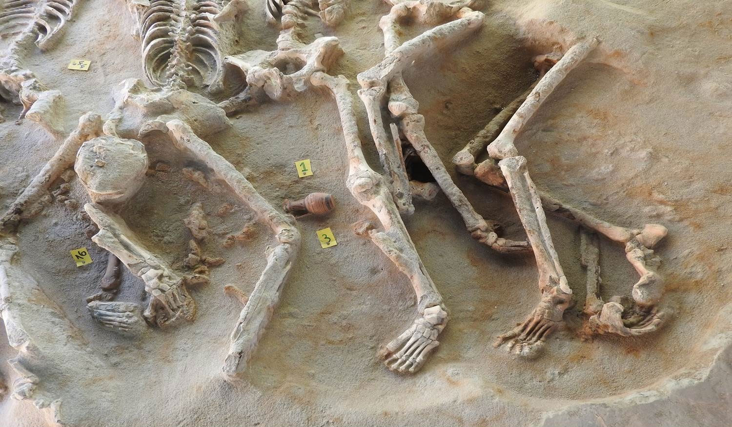 Από την ομαδική ταφή των 80 ανδρών έχει καθαριστεί το 50% και φαίνεται ότι είναι νέοι άνδρες, καλοζωισμένοι, με άριστη οδοντοφυΐα, και εκ πρώτης όψεως δεν έχουν κατάγματα στα οστά. Ένας, μόνο, είχε αιχμή βέλους καρφωμένη στον ώμο και η εξήγηση είναι πως ίσως είχε αιχμαλωτιστεί.