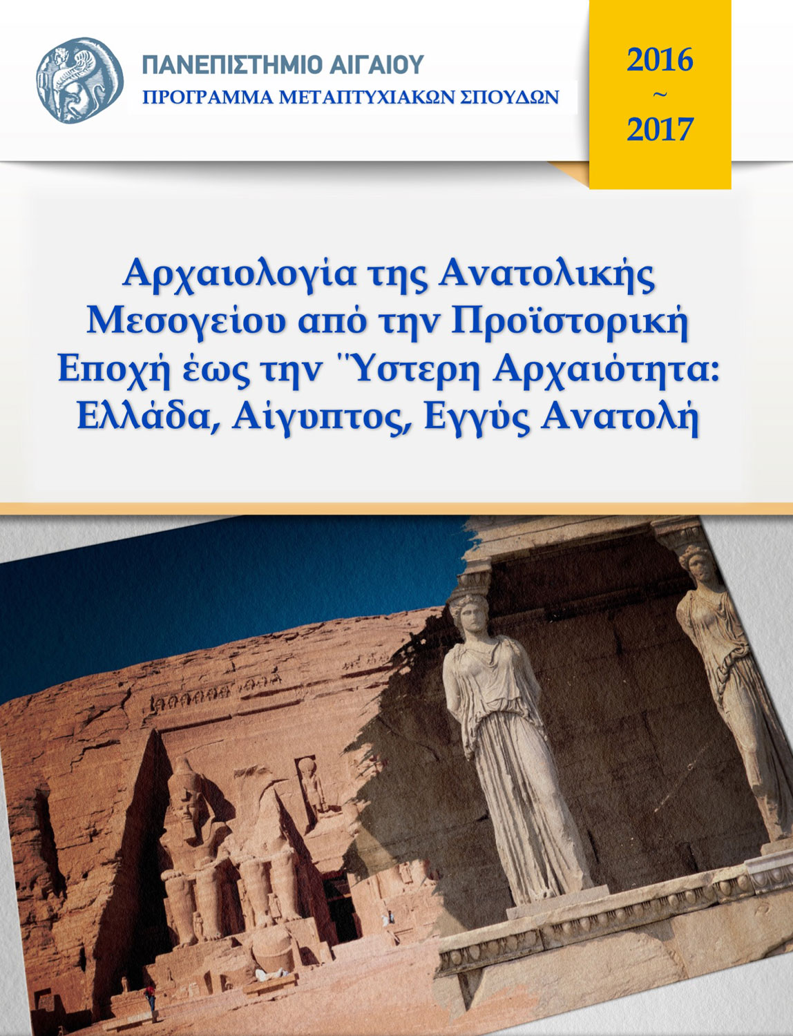 Το Πρόγραμμα Μεταπτυχιακών Σπουδών (ΠΜΣ) «Αρχαιολογία της Ανατολικής Μεσογείου από την Προϊστορική Εποχή έως την Ύστερη Αρχαιότητα: Ελλάδα, Αίγυπτος, Εγγύς Ανατολή» του Πανεπιστημίου Αιγαίου θα δεχτεί για τρίτη συνεχή χρονιά μεταπτυχιακούς φοιτητές για το ακαδημαϊκό έτος 2016-2017. Το Πρόγραμμα απονέμει Μεταπτυχιακό Δίπλωμα Ειδίκευσης στην «Αρχαιολογία της Ανατολικής Μεσογείου».