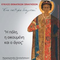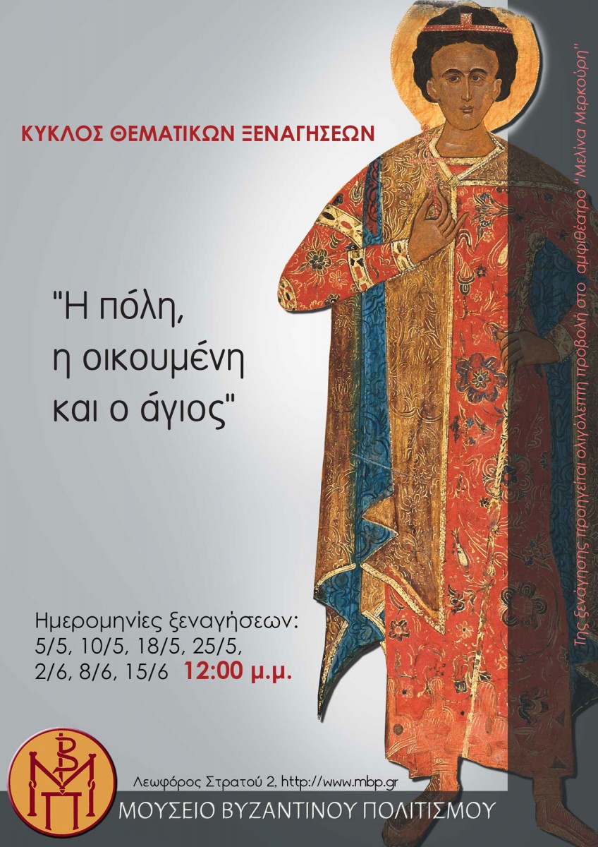 Της ξενάγησης προηγείται ολιγόλεπτη προβολή με θέμα «Η πόλη, η οικουμένη και ο άγιος» στο αμφιθέατρο «Μελίνα Μερκούρη».