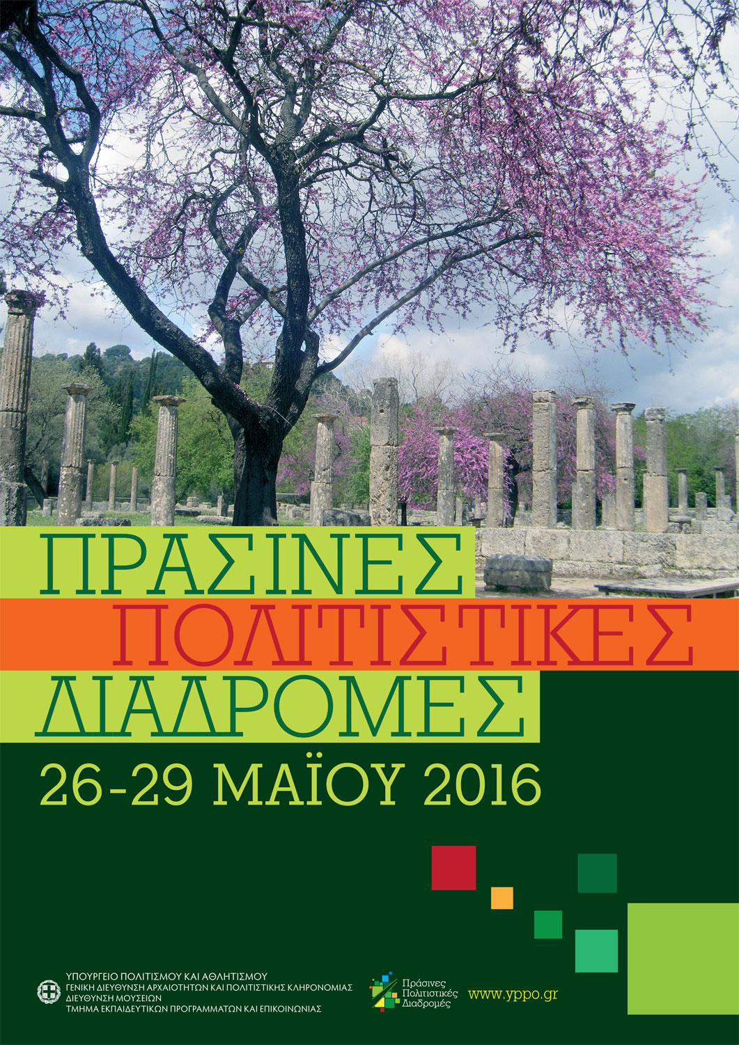 Το Υπουργείο Πολιτισμού και Αθλητισμού διοργανώνει και φέτος, από τις 26 έως τις 29 Μαΐου, σε όλη τη χώρα, την επικοινωνιακή δράση «Πράσινες Πολιτιστικές Διαδρομές» με πλήθος εκδηλώσεων για το ευρύ κοινό και τη μαθητική κοινότητα.