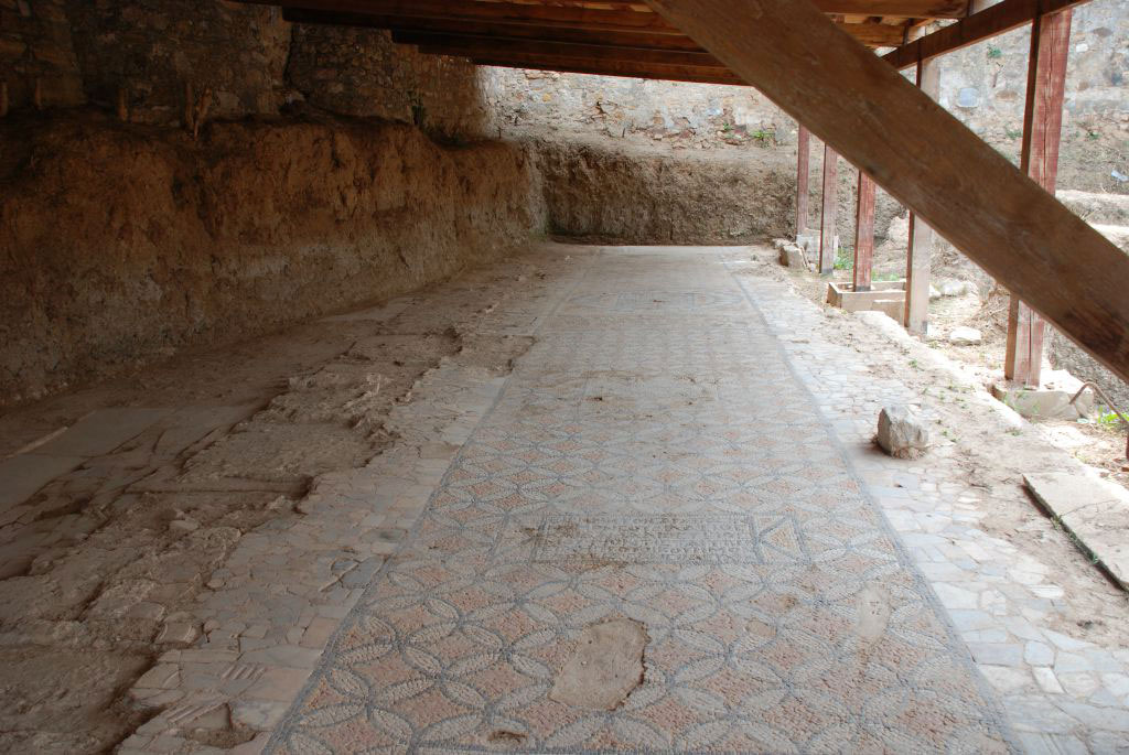 Αναμφίβολα, πρόκειται για μία εκ των τεσσάρων εβραϊκών συναγωγών του νησιού, που βρισκόταν εκτός του Κάστρου. Η ανασκαφή συνεχίστηκε μετά από μία διακοπή ετών κατά το 2015 και αποκάλυψε νέα ψηφιδωτά και στοιχεία (σημ. 48). Η ίδρυση της συναγωγής τοποθετείται από τους ανασκαφείς τον 4ο αι. μ.Χ. και λειτούργησε έως και τον 7ο αι. μ.Χ. Μεταξύ των απεικονίσεων των ψηφιδωτών ξεχωρίζουν αντωπά παγώνια και ένα αιλουροειδές που πνίγει τη λεία του, ενώ δεν λείπουν και οι παραστάσεις με φυτικό διάκοσμο. Η ανασκαφική έρευνα βρίσκεται σε εξέλιξη και θα έχει ιδιαίτερο ενδιαφέρον να διαβάσουμε τις ανακοινώσεις και ίσως και την τελική δημοσίευση, όταν αυτές θα πραγματοποιηθούν (σημ. 49).