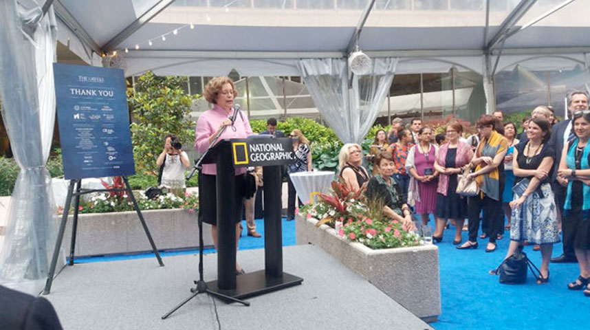 Οι προσκεκλημένοι στη λαμπρή τελετή είχαν την ευκαιρία να παρακολουθήσουν σε ειδική προβολή το πρώτο μέρος του τρίωρου ντοκιμαντέρ παραγωγής του National Geographic με τίτλο «The Greeks. Cavemen to Kings», το οποίο θα προβληθεί από το τηλεοπτικό δίκτυο PBS.