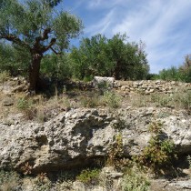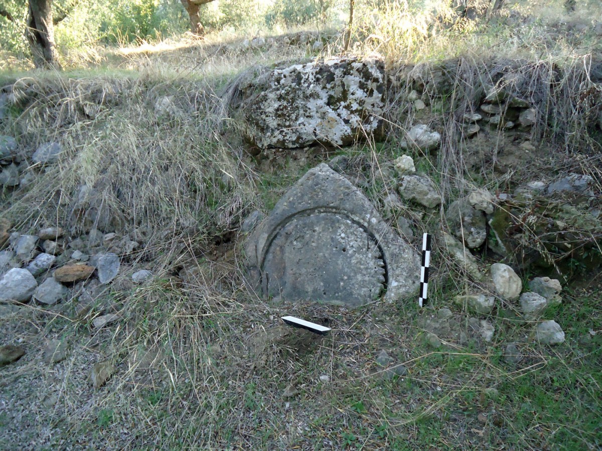 Όπως είναι φανερό το ελαιοπιεστήριο δεν βρίσκεται στη θέση του, ενώ δεν υπάρχουν, επιφανειακά τουλάχιστον, ίχνη εγκατάστασης ελαιοτριβείου στο άμεσο περιβάλλον του. Ωστόσο λόγω του μεγάλου βάρους, θα πρέπει να αποκλειστεί η μεταφορά του από μακρινή απόσταση προκειμένου να χρησιμοποιηθεί μόνο ως δομικό στοιχείο της σύγχρονης ξερολιθιάς (εικ. 11). Συνεπώς η αναζήτηση του αρχαίου ελαιοτριβείου δεν θα πρέπει να γίνει μακριά από την πεσμένη βάση συμπίεσης του ελαιοκάρπου. Η επιφανειακή έρευνα στο ευρύτερο περιβάλλον όπου κείτεται το ελαιοπιεστήριο έδωσε κεραμική ελληνιστικών χρόνων από την οποία άλλωστε είναι κατάσπαρτη ολόκληρη η έκταση στην οποία εξαπλώνεται η αρχαία πόλη (σημ. 19).
