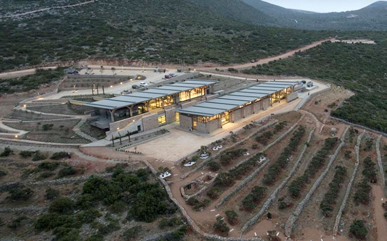 Τα κτίριο, που αναπτύσσεται σε έκταση 3.270 τ.μ., είναι χτισμένο σε 12 στρέμματα από τα οποία τα 5 είναι μαστιχώνας.
