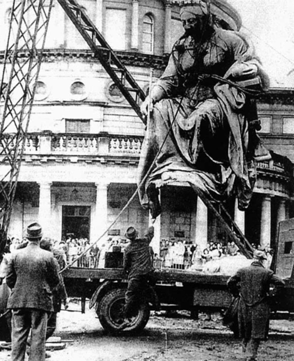 Λόγω της συνεχούς αναταραχής της κοινής γνώμης και της επικρατούσας άποψης πως το μνημείο της βασίλισσα Βικτωρίας αποτελεί ένα «άσχημο έργο τέχνης», ακατάλληλο να βρίσκεται στον συγκεκριμένο χώρο, άρχισε να εξετάζεται το ενδεχόμενο απομάκρυνσής του (σημ. 10). Τη δεκαετία του 1930 υπήρξαν φήμες για πιθανή αντικατάσταση του έργου με ένα μνημείο αφιερωμένο στον Ιρλανδό συγγραφέα και ποιητή Thomas Davis (1814-1845), επικεφαλής του εθνικιστικού κινήματος της δεκαετίας του 1840, «Νέα Ιρλανδία» (σημ. 11). Στην πρόθεση αυτή εντοπίζεται η δυναμική που παρουσιάζει η αρχιτεκτονική και ο πολεοδομικός σχεδιασμός στην ικανοποίηση της επιτακτικής ανάγκης εξάλειψης, επανασυγγραφής και αντικατάστασης της ιστορίας με νέο υλικό που κρίνεται πιο κατάλληλο για το παρόν (Kipphoff 2007). Το γεγονός πως η απόφαση απομάκρυνσης του μνημείου ελήφθη το 1943 (σημ. 12), αμέσως μετά την ανάληψη καθηκόντων από το πρώτο κυβερνητικό κόμμα της ανεξάρτητης Ιρλανδίας, κάθε άλλο παρά τυχαία είναι. Η μεταφορά θα συνέβαλλε στην κοινωνική αναγνώριση της κυβέρνησης από τις τοπικές μάζες, την οποία έχει ιδιαίτερη ανάγκη κάθε νεοσύστατο κράτος. Είναι, άλλωστε, σύνηθες οι μετα-αποικιακές κυβερνήσεις, με στόχο την ενοποίηση του πληθυσμού, να χρησιμοποιούν την αρχιτεκτονική και τη δημόσια γλυπτική για τη συνειρμική πρόκληση εθνικιστικών συναισθημάτων. Στις αρχές του 1949 το μνημείο απομακρύνθηκε από τη θέση του και τοποθετήθηκε στο προαύλιο του Royal Hospital στο Kilmainham του Δουβλίνου. Το 1986 η ιρλανδική κυβέρνηση δώρισε το άγαλμα της βασίλισσας στο Σύδνεϋ της Αυστραλίας, για να τοποθετηθεί μπροστά από το πρόσφατα αποκατεστημένο Queen Victoria Building. Οι αλληγορικές μορφές, οι οποίες σε δημοσίευμα του 1950 συμπεριλήφθηκαν στα «καλύτερα γλυπτά του Δουβλίνου» (σημ. 13) παρέμειναν στην ιδιοκτησία του κράτους.