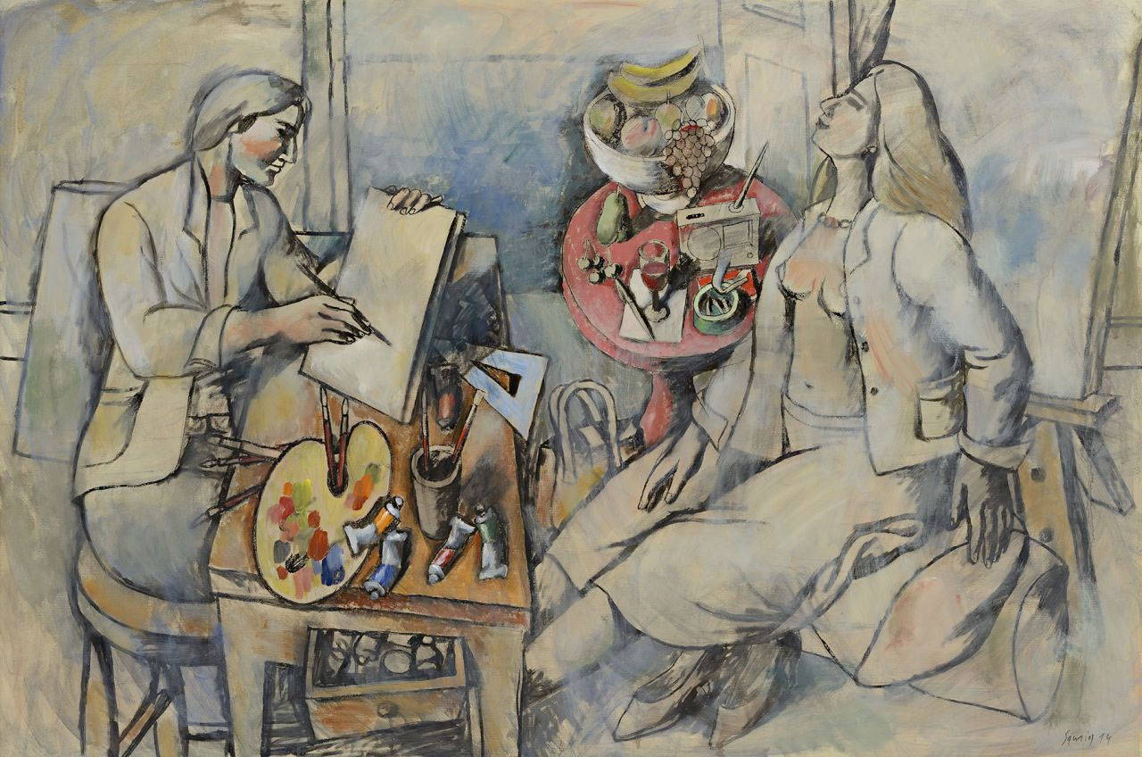 Η πρώτη ενότητα έργων της έκθεσης παρουσιάζει τη σχέση του ζωγράφου με το μοντέλο του. Σε αυτήν ο Παύλος Σάμιος επισκέπτεται τα ατελιέ κορυφαίων δασκάλων της τέχνης, ενώ εκείνοι ζωγραφίζουν παρέα με τα μοντέλα τους.