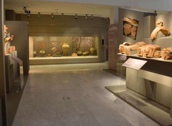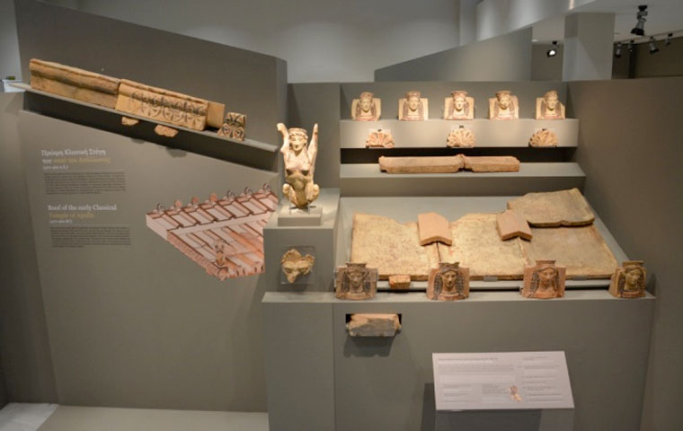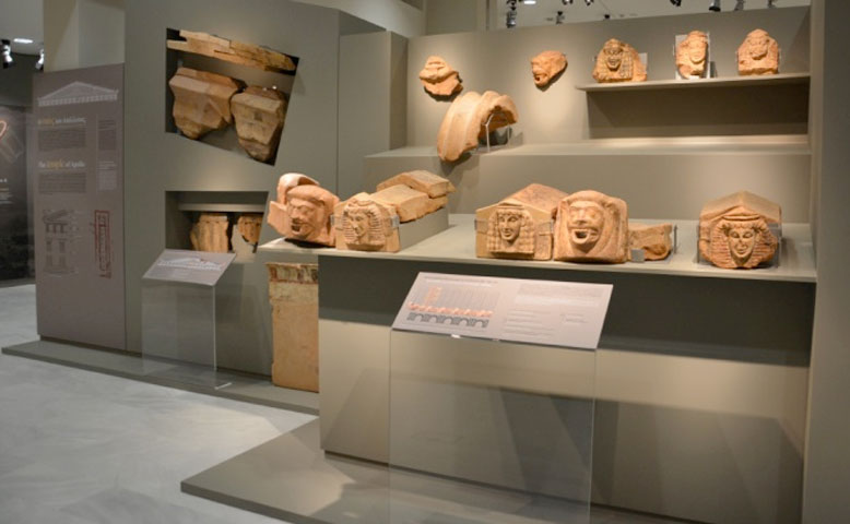 Η έκθεση διαρθρώνεται χρονολογικά σε έξι ενότητες, αρχίζοντας από τα πρώτα ίχνη κατοίκησης στο χώρο και τη δημιουργία του Ιερού του Απόλλωνος έως τον μετασχηματισμό του σε θρησκευτικό και πολιτικό κέντρο της Αιτωλικής Συμπολιτείας και την παρακμή του. Το αρχαιολογικό υλικό εμπλουτίζεται με επεξηγηματικά κείμενα, σχέδια και αναπαραστάσεις, αποσπώμενες καρτέλες με επιπλέον πληροφοριακό υλικό, κείμενα σε μορφή Braille. Στην αίθουσα πολλαπλών χρήσεων δίνονται περισσότερες πληροφορίες μέσω διαδραστικών εφαρμογών και εκπαιδευτικών προγραμμάτων.