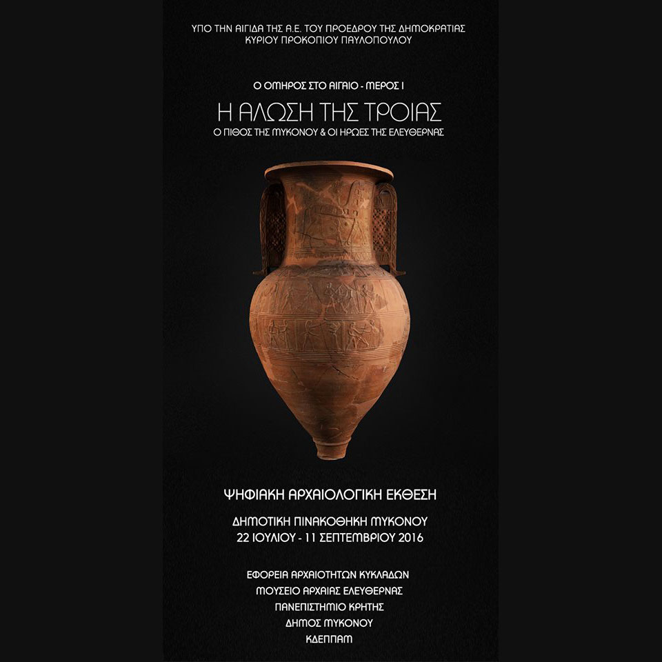 Σειρά εκδηλώσεων με θέμα «Ο Όμηρος στο Αιγαίο» διοργανώνουν η Εφορεία Αρχαιοτήτων Κυκλάδων σε συνεργασία με τον Δήμο Μυκόνου και το Πανεπιστήμιο Κρήτης, στο πλαίσιο των πολιτιστικών δράσεων με επίκεντρο τον συμβολικό ομφαλό των Κυκλάδων, τη Δήλο, και τη γειτονική της Μύκονο. Οι εκδηλώσεις ξεκινούν με μία ψηφιακή αρχαιολογική έκθεση με τίτλο «Η Άλωση της Τροίας. Ο πίθος της Μυκόνου και οι ήρωες της Ελεύθερνας».