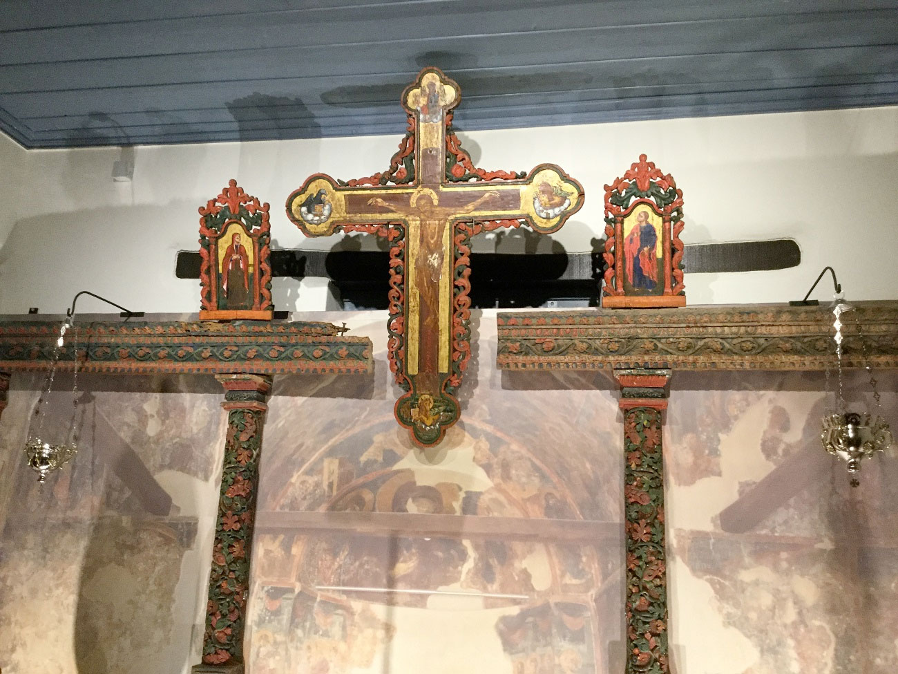 Οι τοιχογραφίες του ναού χαρακτηρίζονται ως εξαιρετικά ενδιαφέρουσες, μερικές απ’ αυτές, μάλιστα, είναι ασυνήθιστες έως και σπάνιες. Οι εικόνες του μοναστηριού, εκτίθενται σήμερα στο Ιστορικό Μουσείο Κρήτης, στο Ηράκλειο. Σύμφωνα με την παράδοση, η μονή ιδρύθηκε από βυζαντινό άρχοντα μετά το 961, όταν ο Νικηφόρος Φωκάς απελευθέρωσε την Κρήτη από τους Άραβες. Ωστόσο, ο τοιχογραφικός διάκοσμος φιλοτεχνήθηκε τον 14ο αιώνα και συγκεκριμένα την πρώτη πεντηκονταετία.