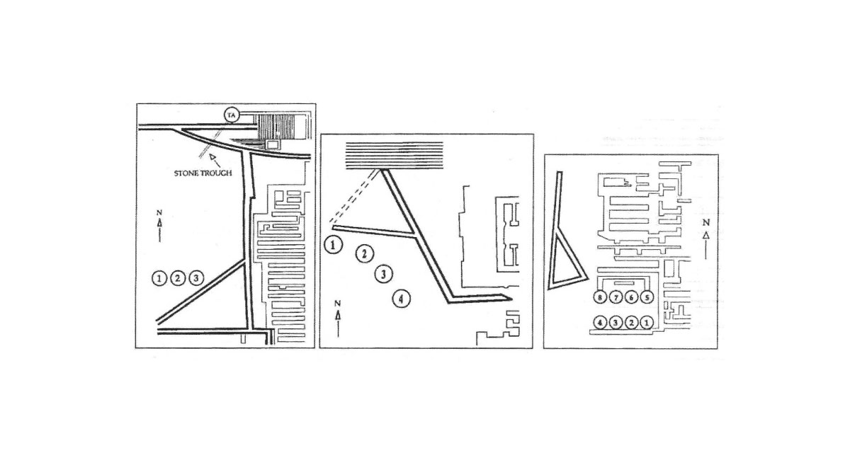 Οι παραπάνω προβληματισμοί αναφορικά με την «κουλούρα» στην «Οικία Έψιλον» εγγράφονται στο ζήτημα της λειτουργίας των κυκλικών σκαμμάτων με λιθόκτιστα τοιχώματα (Ζώης 1997, σ. 151) στις πρώιμες δυτικές αυλές των τριών από τα μέχρι σήμερα γνωστά μινωικά «ανάκτορα», της Κνωσού, της Φαιστού και των Μαλίων (εικ. 5). Όπως επισημαίνει ο Ζώης, οι βιβλιογραφικές περιπέτειες των συγκεκριμένων δομών δεν είναι λίγες, δεδομένης της προσπάθειας κατανόησής τους υπό το πρίσμα μίας και μόνο καθολικής ερμηνείας (Ζώης 1997, σ. 151). Μήπως, όμως, κάθε περίπτωση είναι διαφορετική παρά τις, ενδεχομένως φαινομενικές, ομοιότητες;