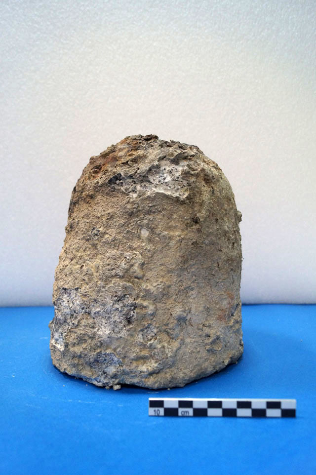 Σημαντικό εύρημα θεωρείται και η ανεύρεση μιας μολύβδινης καταπειρατηρίας, βάρους 50 κιλών. Πρόκειται για αντικείμενο σχήματος κολουρο-ημισφαιρικού, που εμφανίζει κωδωνόσχημη τομή λόγω κοίλανσης στο εσωτερικό της βάσης του. Στην επίπεδη άνω όψη υπάρχουν δύο μικρές τετράγωνες εγκοπές για το στέλεχος ανάρτησής του. Βάσει των χαρακτηριστικών του, το αντικείμενο ταυτίζεται με βολίδα για τη μέτρηση του βάθους του θαλασσίου βυθού και τον έλεγχο της φύσης του. Τη δειγματοληψία από το βυθό εξυπηρετούσε η κοίλανση στη βάση με τους ήλους από σίδερο ή χαλκό, που παγίδευαν λασπώδη άμμο, λίθους και ιζήματα, αποκαλύπτοντας την ιδιαίτερη χρησιμότητα του αντικειμένου για την περίπτωση ελιγμών ή αγκυροβολίας. Αυτό το ταπεινό εργαλείο θεωρείται ζωτικής σημασίας για την ασφαλή ναυσιπλοΐα κατά την αρχαιότητα. Οι παλαιότερες καταπειρατηρίες χρονολογούνται τουλάχιστον από τον 6ο π.Χ. αιώνα. Στο ναυάγιο έχει βρεθεί μία ακόμα καταπειρατηρία κατά τις έρευνες των ετών 1900-1901.