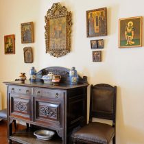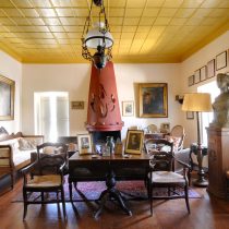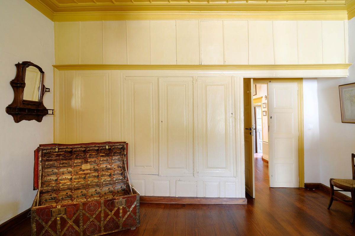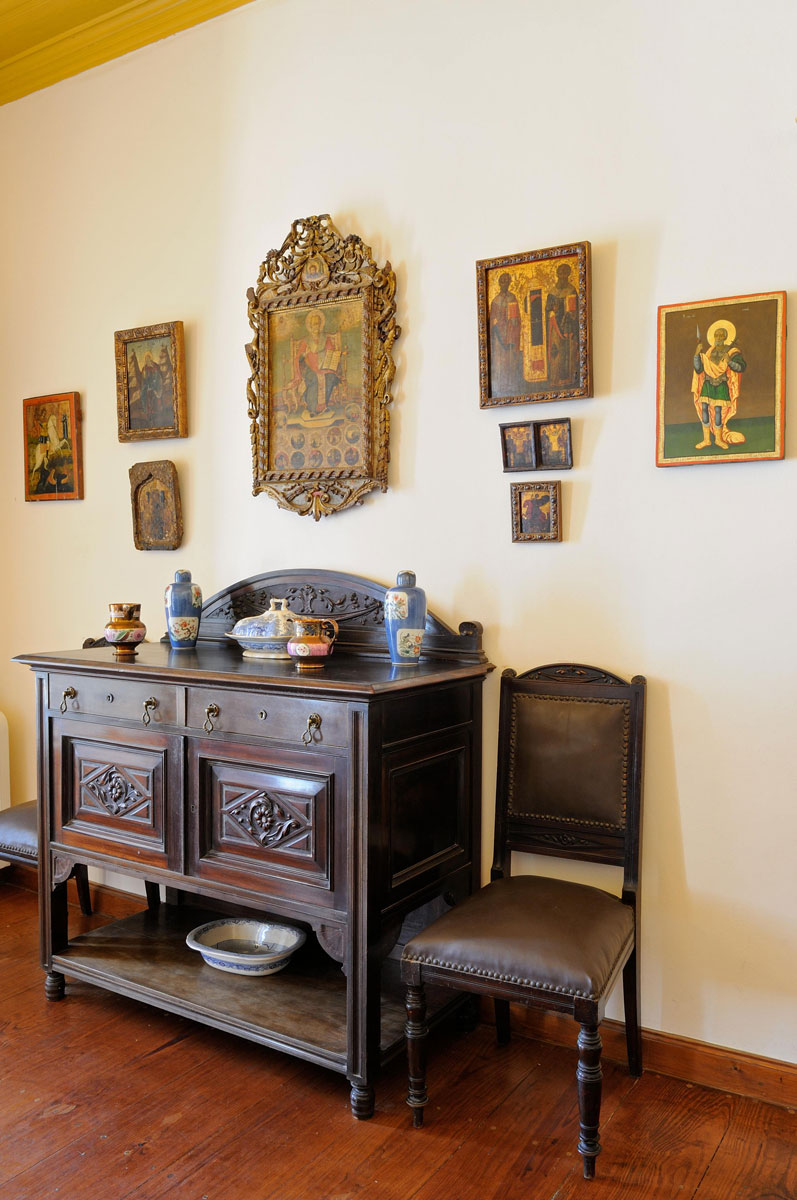 Στο Δωμάτιο με το Τζάκι, με επίπλωση κυρίως του 19ου αιώνα, υπάρχουν φωτογραφίες των απογόνων της και διάσπαρτα αντικείμενα καθημερινής χρήσης. Ξεχωρίζουν η νυφική βενετσιάνικη κασέλα, ένα γαλλικό επίχρυσο ρολόι με πορσελάνη Sevres, γαλλικές μινιατούρες, κεντήματα, τσεβρέδες, χάρτες, αφιερώματα και ελαιογραφίες εποχής.