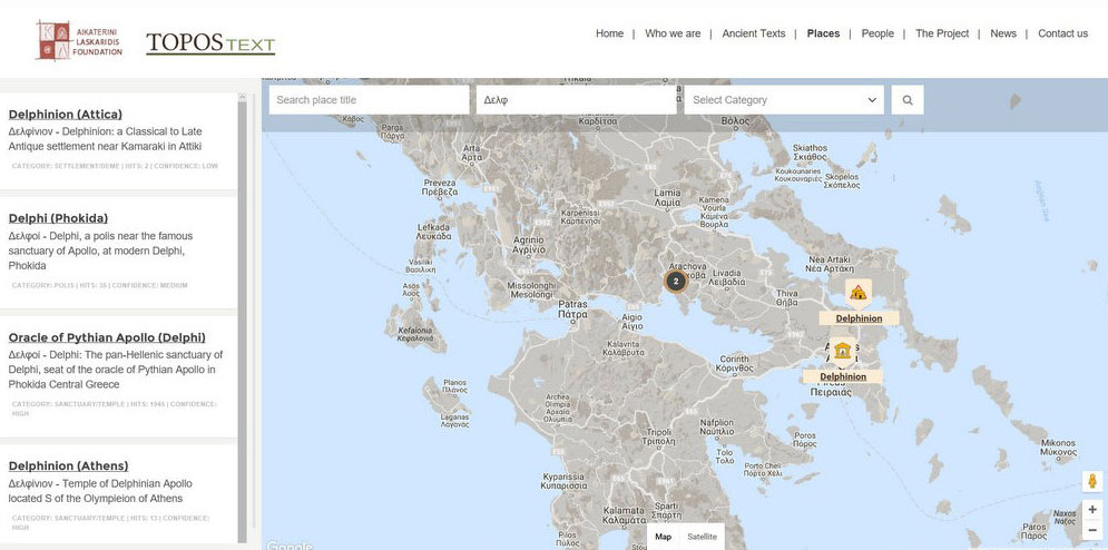 – Διαδραστικό χάρτη και ευρετήριο που συνδέει κάθε τοποθεσία με την αρχαία πηγή, η οποία αναφέρεται σε αυτήν.