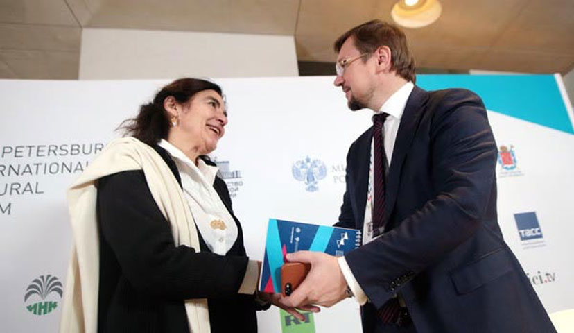 Η υπουργός Πολιτισμού συμμετείχε, επίσης, στο 5ο Διεθνές Πολιτιστικό Φόρουμ της Αγίας Πετρούπολης (1-3 Δεκεμβρίου), όπου η Ελλάδα ήταν φέτος η πρώτη τιμώμενη χώρα, το οποίο χαρακτήρισε πολύ σημαντική πρωτοβουλία, καθώς «μέσα στις μεγάλες παγκόσμιες αλλαγές και το τσουνάμι του Πολιτισμού που ακόμα δεν ξέρουμε πού θα μας πάει και τι θα αφήσει πίσω του, μας κάνει να σκεφτούμε με ποιους τρόπους θα προστατεύσουμε την υλική κληρονομιά μας, αλλά και πώς θα διατηρήσουμε ζωντανό το πνεύμα της άυλης κληρονομιάς και θα του δώσουμε νέες προεκτάσεις στις νεότερες γενιές».