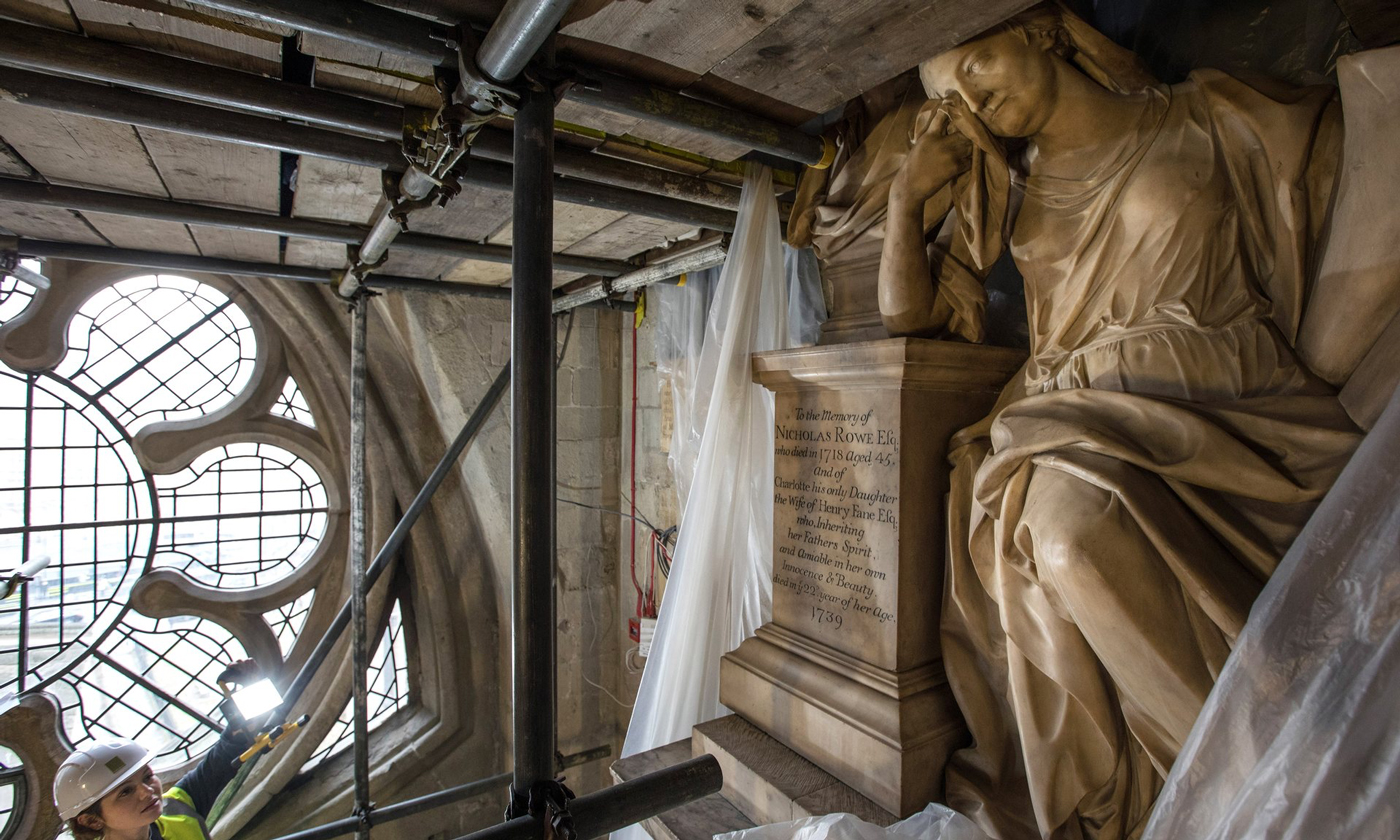 Όταν ανέβηκαν τους ορόφους για να φτάσουν στο υπερώο του Αβαείου του Ουέστμινστερ, τεχνίτες και οικοδόμοι αντίκρισαν σκουπίδια αιώνων και χιλιάδες κομμάτια εύθραυστων θησαυρών: Φορτία σκόνης κοσκινίστηκαν προκειμένου να διασφαλιστεί ότι δεν χάθηκε τίποτα. Ανάμεσα στα ευρήματα είναι ένα ξύλινο ολλανδικό τσόκαρο, μια πήλινη πίπα και 31.000 κομμάτια από βιτρό, ορισμένα χρονολογούνται από τον 13ο αιώνα, όταν κατασκευάστηκε η εκκλησία. Ορισμένα από τα κομμάτια προέρχονται από παράθυρα που έσπασαν κατά τη διάρκεια των σφοδρών αεροπορικών βομβαρδισμών πάνω από τη Βρετανία στον Β’ Παγκόσμιο Πόλεμο, αλλά και από το μένος των εικονοκλαστών της μεταρρύθμισης. Στη διαδικασία που ακολούθησαν οι τεχνίτες, όλα τα βιτρό διασώθηκαν, καθαρίστηκαν με προσοχή και χιλιάδες συναρμολογούνται ξανά.