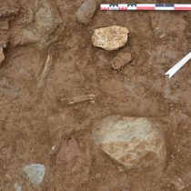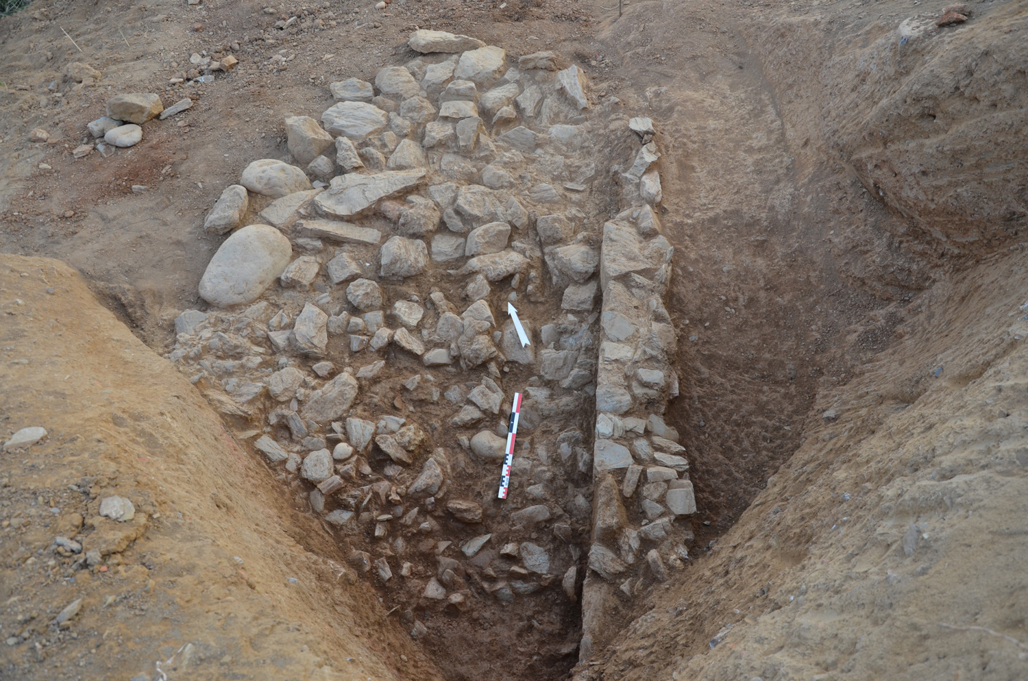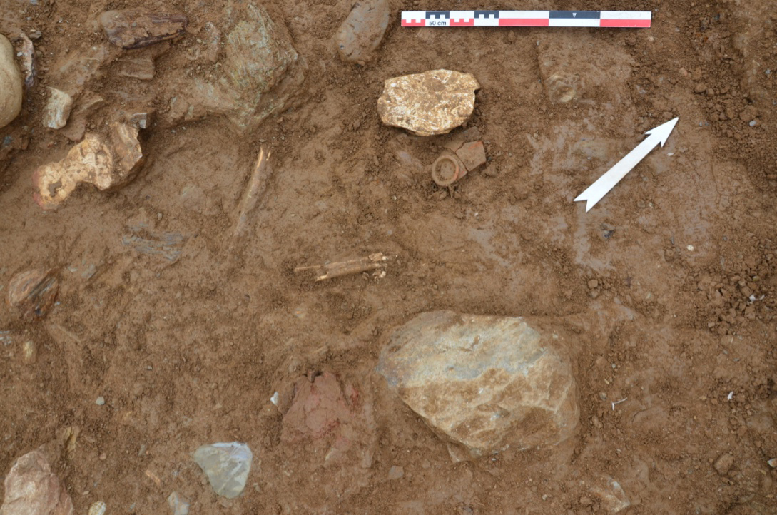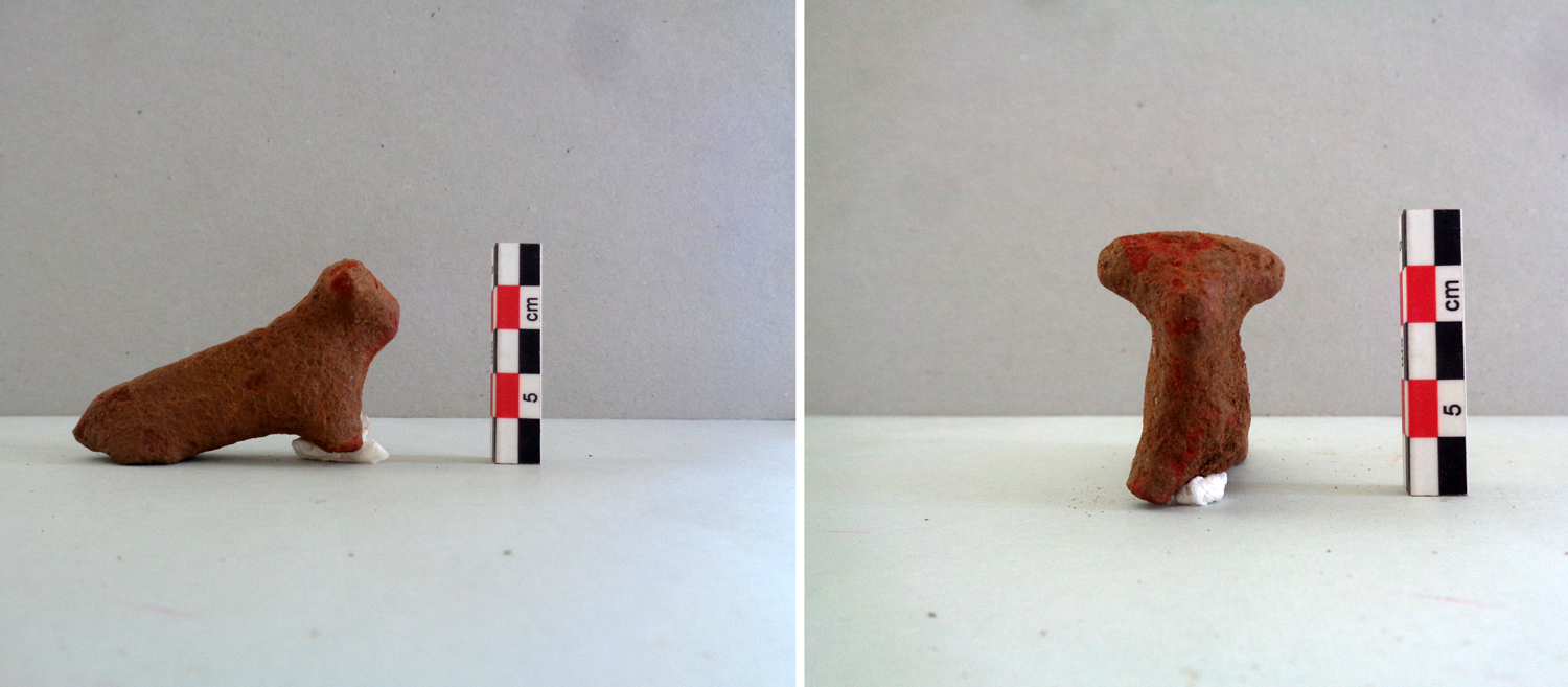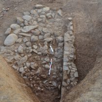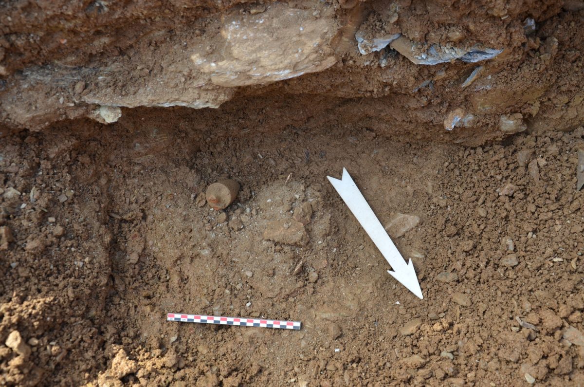 Στη βορειοανατολική γωνία του ορύγματος, αλλά σε υψηλότερο επίπεδο, μέσα σε συσσώρευση πλακοειδών λίθων που ίσως σχετίζονται με τον πλούσιο τάφο ΙΙΙ του πρώιμου 10ου αι. π.Χ. που είχε ανασκαφεί πέρυσι, εντοπίστηκε ακέραιο άβαφο πήλινο ειδώλιο βοοειδούς καθώς και ένα επίμηκες οστό.