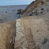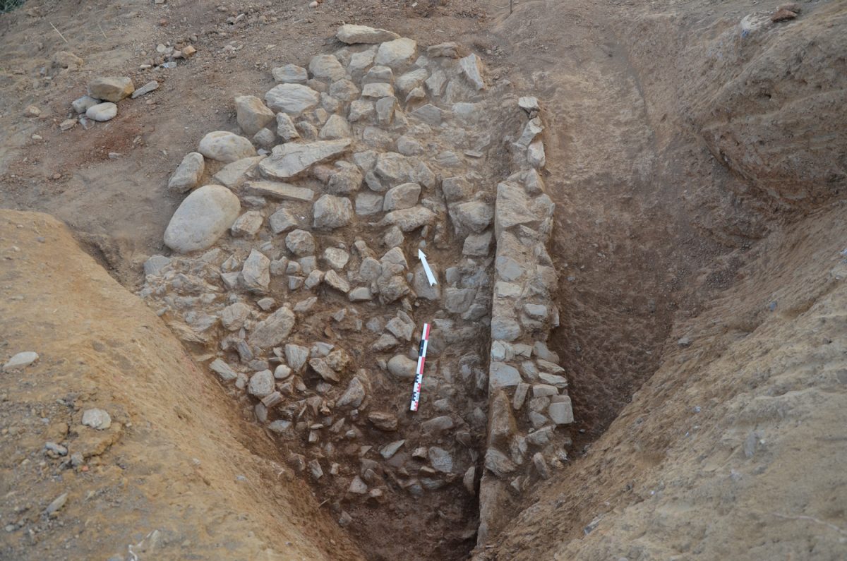 Σε επαφή με την «τράπεζα» αποκαλύφθηκε αναλημματικός τοίχος μήκους 2,90 μ., με κατεύθυνση ΒΔ-ΝΑ. Είναι χτισμένος από μεγάλους κατεργασμένους λίθους με μικρότερους ανάμεσά τους. Η κατασκευή του προηγείται αυτής της «τράπεζας».