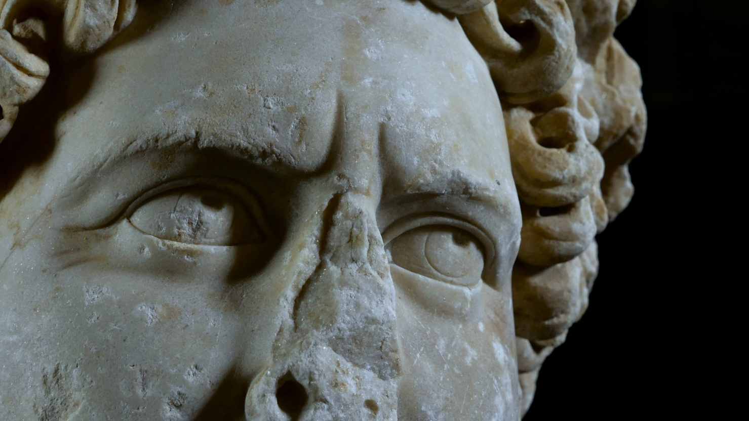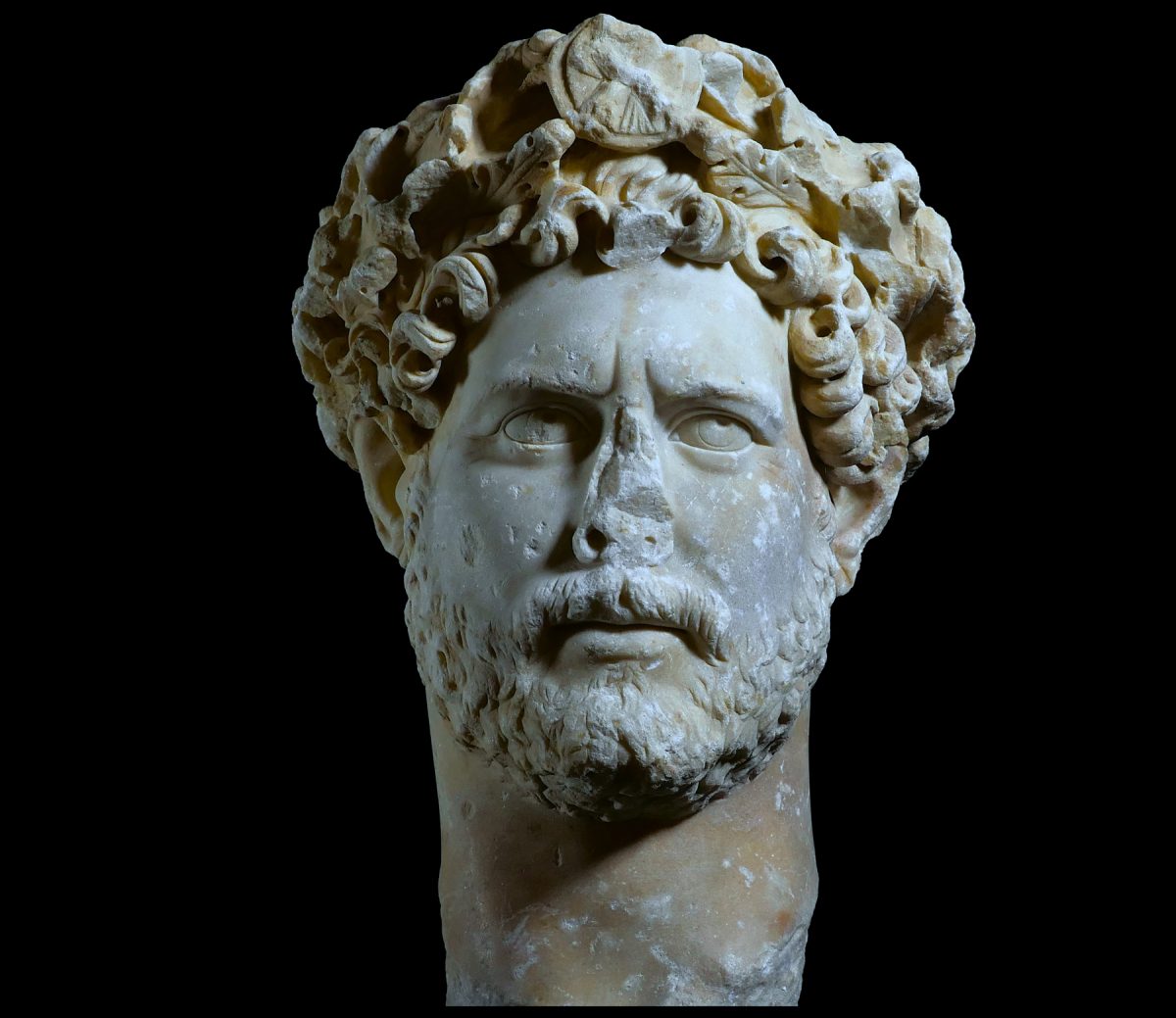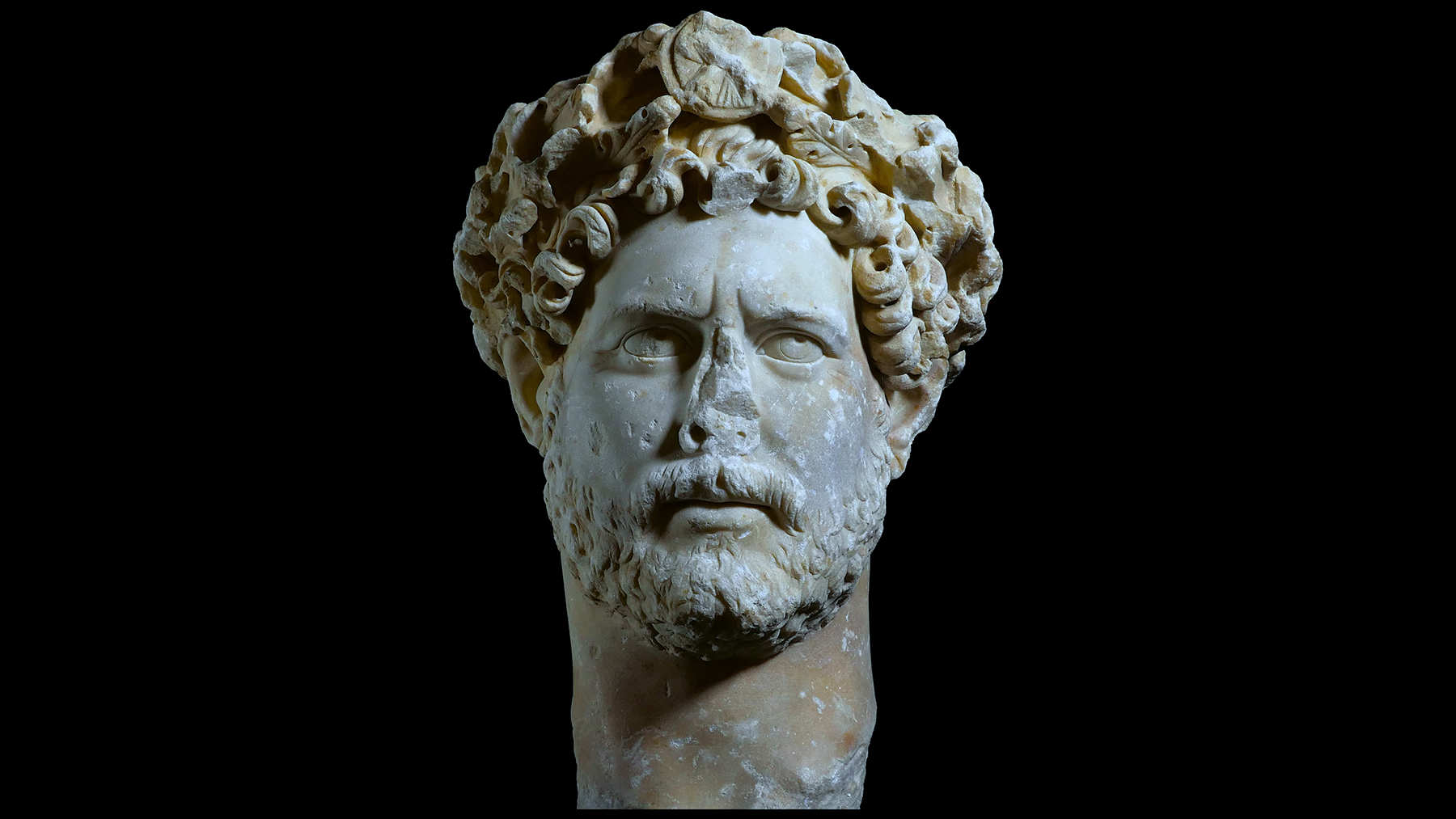 Ο Αδριανός είναι ο πρώτος αυτοκράτορας που απεικονίζεται με γενειάδα φιλοσόφου. Στο πορτρέτο που που θα παρουσιαστεί στο Μουσείο Ακρόπολης, το βλέμμα του αποστρέφεται τα επίγεια και ατενίζει προς τον ουρανό. Το στεφάνι του, από φύλλα βελανιδιάς, φέρει ως έμβλημα τον αετό του Διός. Αυτός ο «πολιτικός στέφανος» χαρακτηρίζει τον αυτοκράτορα ως σωτήρα των πολιτών. Το γλυπτό βρέθηκε στη λεωφόρο Συγγρού το 1933 και φυλάσσεται στο Εθνικό Αρχαιολογικό Μουσείο (130-140 μ.Χ.).