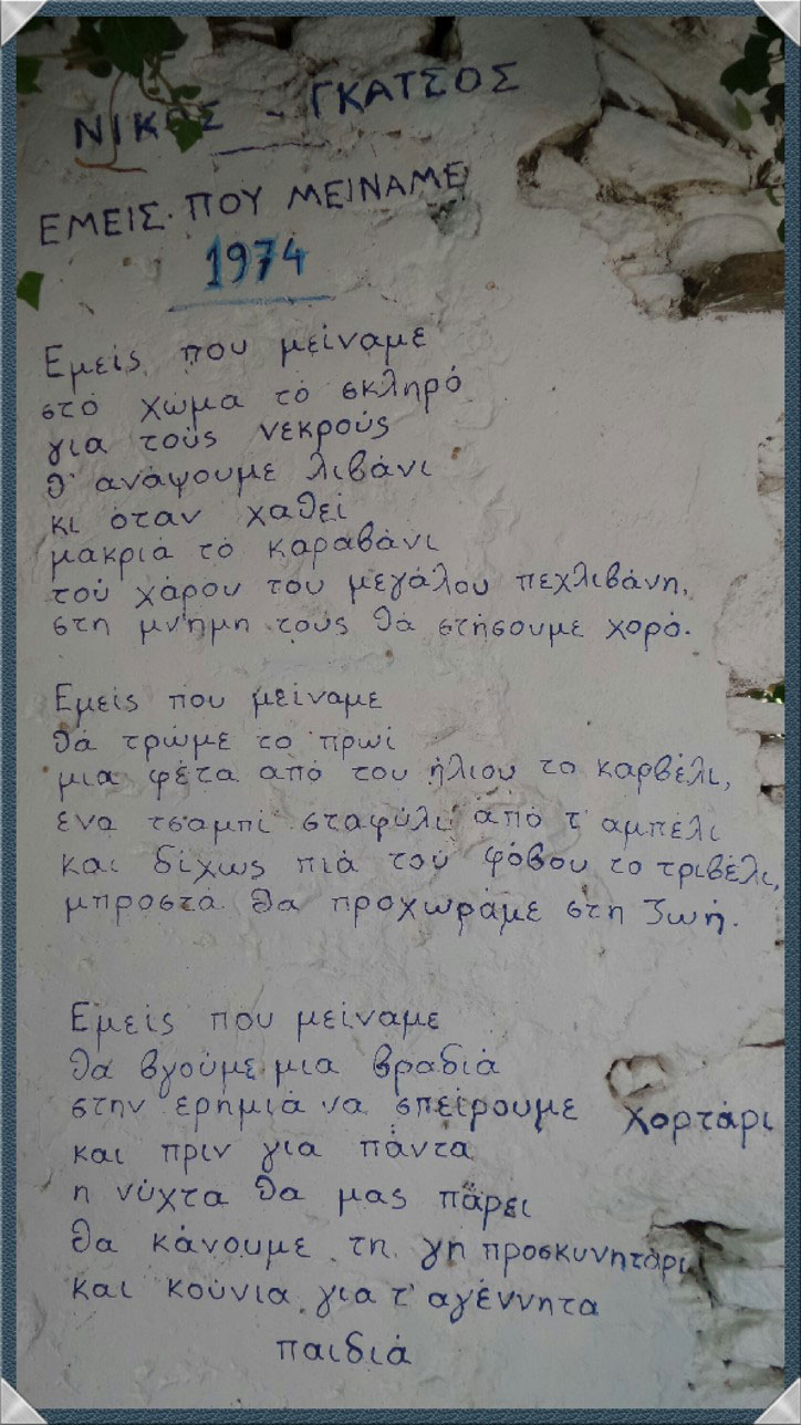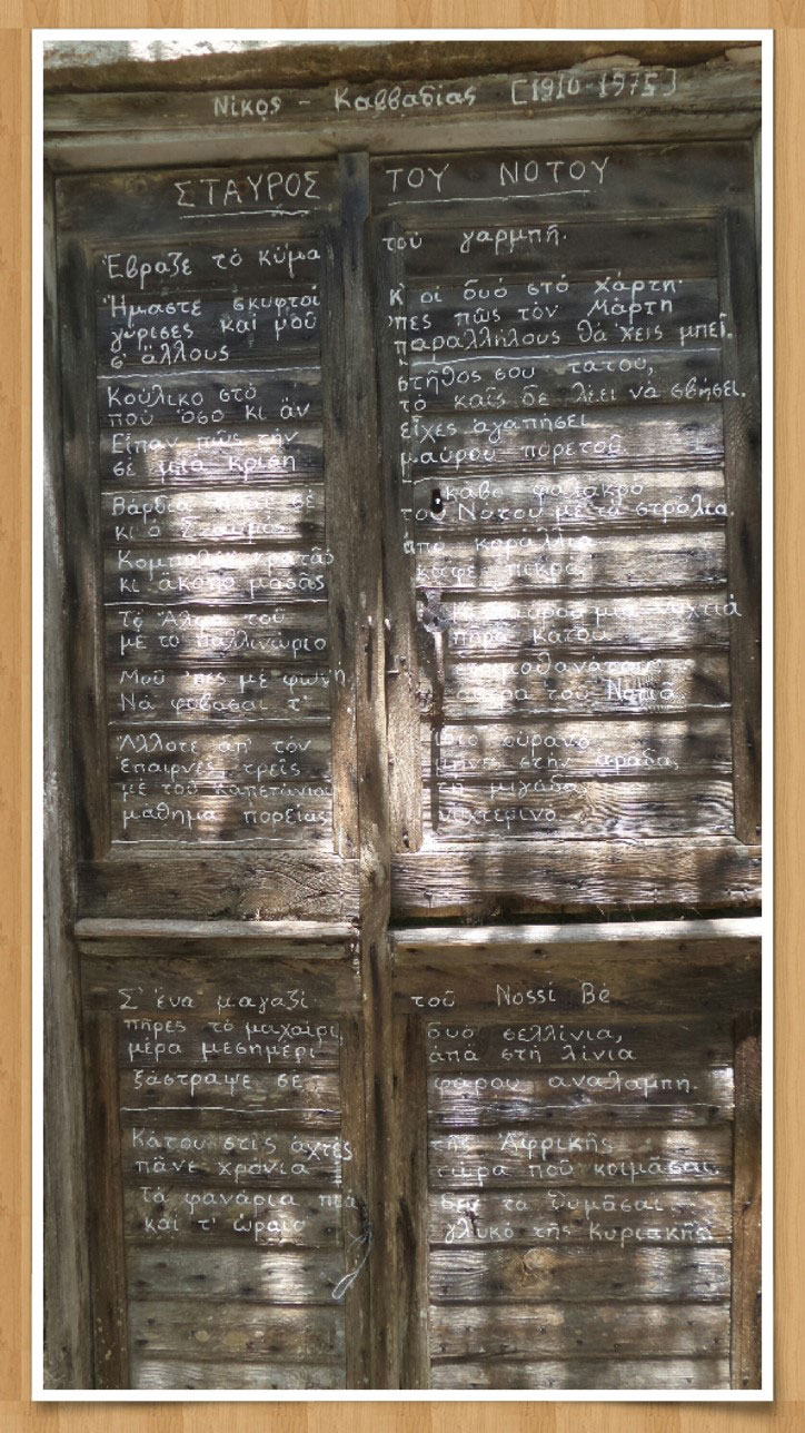 Ξεκλειδώνουν αναμνήσεις, «παίζουν» με τις κρυμμένες ευαισθησίες και εκπλήσσουν ευχάριστα όσους τα αντικρίζουν: παραθυρόφυλλα, πόρτες και τοίχοι εγκαταλελειμμένων κτισμάτων στο χωριό Βωλάξ (Βώλακας) της Τήνου, γίνονται ένας ιδιαίτερος “καμβάς” πάνω στον οποίο, εδώ και τέσσερα χρόνια, ο Λάσκος Λασκαρίδης αποτυπώνει ποιήματα Ελλήνων ποιητών, δίνοντάς τους μια νέα πνοή και καθιστώντας τά ψηφίδες πολιτισμού».