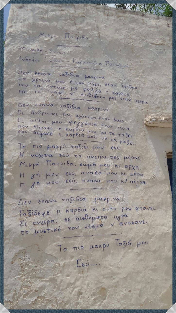 Στον Βωλάκα, που είναι γνωστός για τους τεράστιους γρανιτένιους, ηφαιστειογενείς ογκόλιθους που βρίσκονται διάσπαρτοι γύρω απ’ αυτόν, ο κ. Λασκαρίδης έδωσε «ζωή» σε έρημα σπίτια, καταθέτοντας σε κοινή θέα τον γνώριμο λόγο των Ελλήνων ποιητών της νεότερης ιστορίας.
