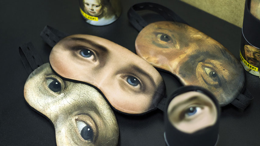 Φιλοτέχνησε λοιπόν μάσκες ύπνου, οι οποίες κοιτούν το σκοτάδι μέσα από τα μάτια προσώπων σε πίνακες ζωγραφικής, σαν την «Αυτοπροσωπογραφία» που ζωγράφισε ο Βαν Γκογκ το 1887 ή τη «Νυχτερινή Περίπολο» που ζωγράφισε ο Ρέμπραντ το 1642.
