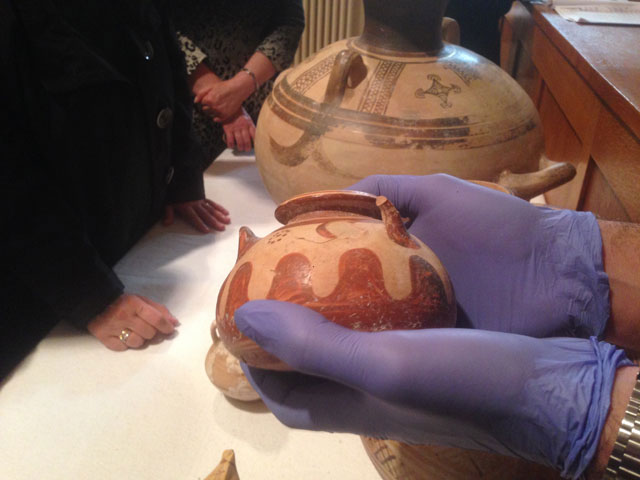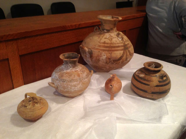 Η ίδια διευκρίνισε ότι πρόκειται για 33 αντικείμενα από την Ύστερη Εποχή του Χαλκού, με πολύ ενδιαφέροντα σχήματα και σχέδια, ενώ τα περισσότερα φαίνεται να ανήκουν στο ίδιο εργαστήριο αγγειοπλαστικής. Υπάρχουν επίσης και μικροαντικείμενα από τους γεωμετρικούς χρόνους, πραγματικά αριστουργήματα, καθώς και 600 νομίσματα. «Είναι μια αδιαπραγμάτευτη αρχή της ελληνικής πολιτείας η πάταξη της αρχαιοκαπηλίας και η με κάθε μέσο προστασία της πολιτιστικής κληρονομιάς. Είναι επιθυμία μας αυτοί οι παράνομα αποκτηθέντες αρχαίοι θησαυροί, να επανέλθουν στους χώρους από όπου εκλάπησαν. Ήδη συζητούμε οι συγκεκριμένες αρχαιότητες να παρουσιαστούν τον κατάλληλο χρόνο και με τον καλύτερο τρόπο στο κοινό, για να μπορέσει να τις θαυμάσει», συμπλήρωσε στο ΑΠΕ-ΜΠΕ η κα Κονιόρδου.