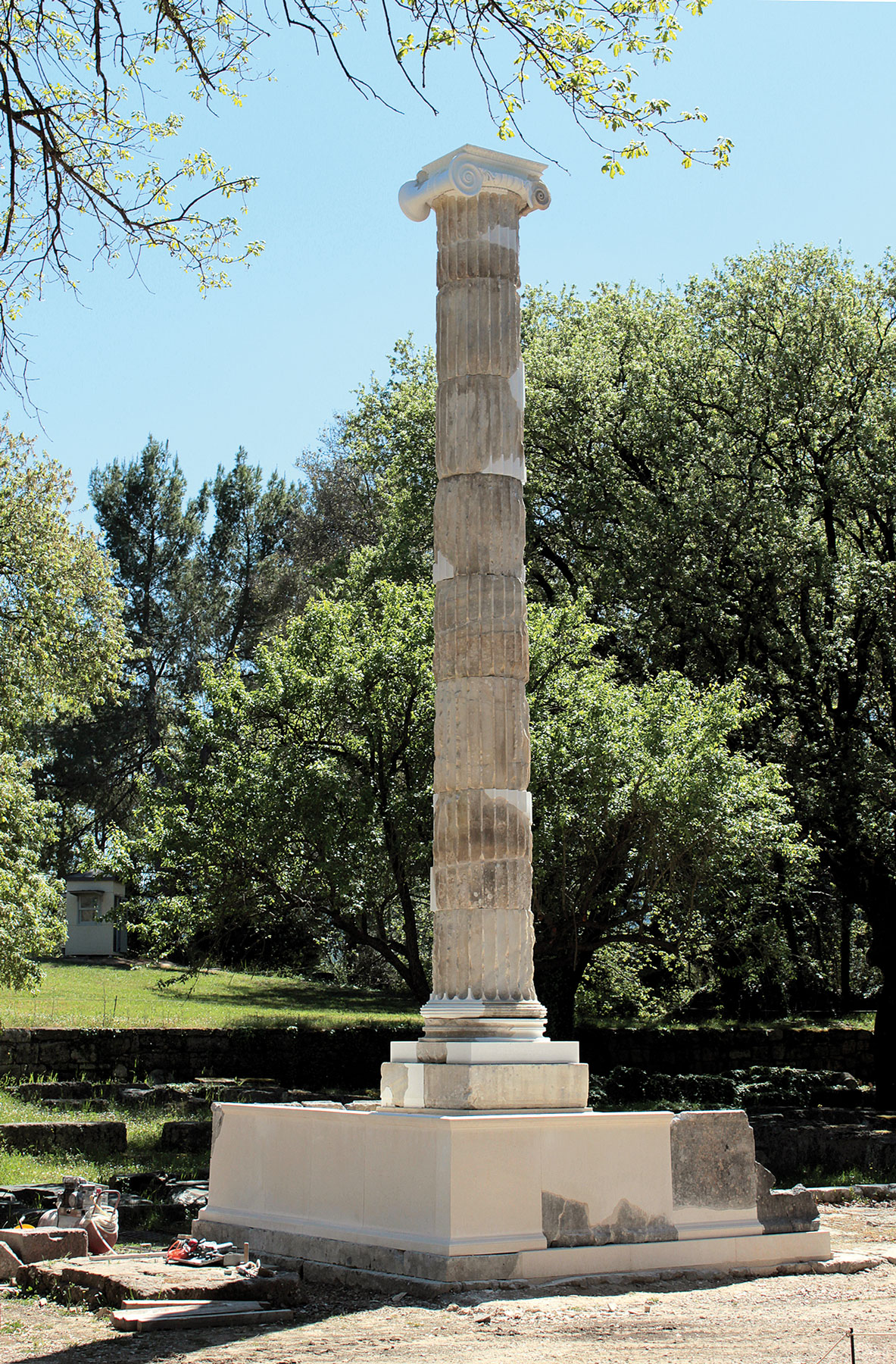 Σε συνέχεια των αναστηλωτικών εργασιών στο Φιλιππείο και στον ναό του Διός, το μνημείο θα προσφέρει στους επισκέπτες του αρχαιολογικού χώρου μία ακόμη δυνατότητα να αντιληφθούν την τρίτη διάσταση των αρχαίων κτηρίων και να αποκτήσουν μία ιδέα για την εντύπωση που αυτά προκαλούσαν.