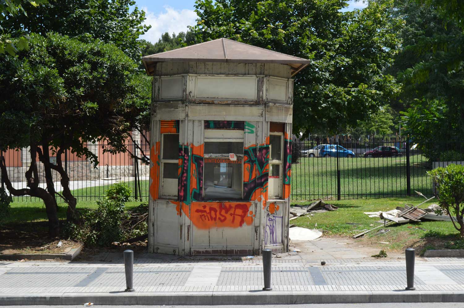 Μπορεί να έφερε τον τίτλο του «διατηρητέου», όμως το μόνο προνόμιο που απολάμβανε εδώ και τουλάχιστον μία δεκαετία ήταν η εγκατάλειψη και η φθορά με το πέρασμα του χρόνου. Τώρα τελευταία μάλιστα, το περίπτερο πρόσφερε στέγη σε κάποιον άστεγο της πόλης…
