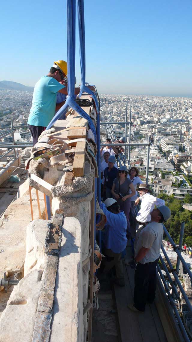 Kαταβιβάστηκε χθες με επιτυχία ο κεντρικός ορθοστάτης του τυμπάνου του δυτικού αετώματος του Παρθενώνα, παρουσία της Γενικής Γραμματέως του Υπουργείου Πολιτισμού και Αθλητισμού, Μαρίας Ανδρεαδάκη-Βλαζάκη, του προέδρου της Επιτροπής Συντηρήσεως Μνημείων Ακροπόλεως (ΕΣΜΑ), ακαδημαϊκού Μανόλη Κορρέ, και της Προϊσταμένης της ΥΣΜΑ Βασιλικής Ελευθερίου.