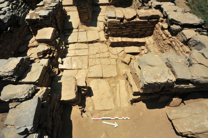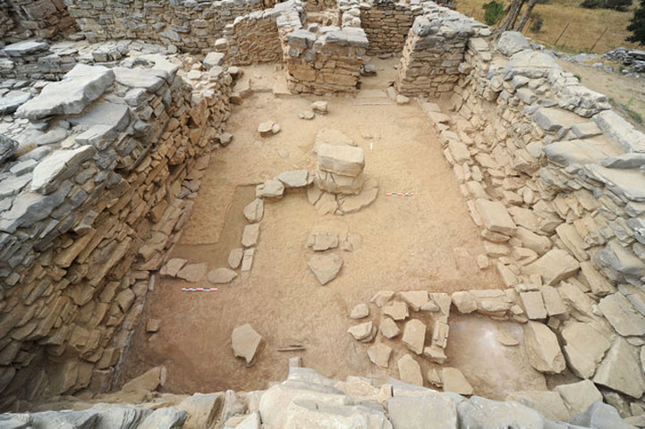 Μία ακόμη εσωτερική σκάλα αποκαλύφθηκε κατά την ανασκαφή, ενώ οι τοίχοι, μερικοί από τους οποίους σώζονται σε ύψος έως και τριών μέτρων, αποδεικνύουν ότι το κτήριο ήταν πολυώροφο. Οι μεγάλες του αίθουσες στήριζαν τους επάνω ορόφους με κεντρικούς πεσσούς ή κίονες. Τα δάπεδα, που ήρθαν και φέτος στο φως, άλλα από λαμπερό ασβεστόλιθο και άλλα βοτσαλωτά, υποδηλώνουν την πολυτέλεια που επικρατούσε στο εσωτερικό του, το ίδιο και τα τοιχογραφημένα κονιάματα που κοσμούσαν τα δωμάτια, δείγμα εκλέπτυνσης της εποχής και των κατοίκων του.