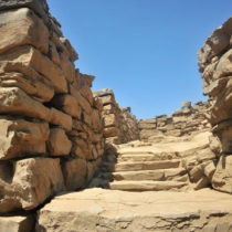 Κατά την ανασκαφική έρευνα εντοπίστηκε και η είσοδος της νοτιοανατολικής γωνίας, η οποία όμως δυστυχώς δεν σώζεται σε καλή κατάσταση, καθώς υπέστη πολλές μετασκευές στα μεταγενέστερα χρόνια (μυκηναϊκά και ρωμαϊκά) αλλά και μεγάλη καταστροφή λόγω των αρχαιοκαπηλικών δράσεων της δεκαετίας του ’60. Φαίνεται, ωστόσο, πως ήταν μεγαλοπρεπέστατη, οδηγώντας με κλίμακες, που ξεκινούσαν από το κατώτερο επίπεδο του λόφου, όπου είναι κτισμένο το ανάκτορο, στην κεντρική αυλή του. Και οι δύο είσοδοι πάντως αποτελούν διαφορετικούς τύπους από αυτόν της κεντρικής βόρειας εισόδου, η οποία αρχιτεκτονικά είναι λιγότερο σύνθετη.