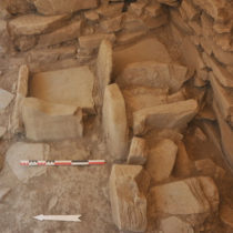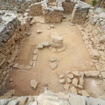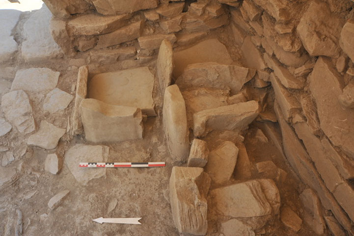 Σε διπλανό δωμάτιο, οι λίθινες θήκες που αποκαλύφθηκαν θα περιείχαν πολύτιμα αντικείμενα, τα οποία ασφαλώς πήραν μαζί τους οι ένοικοι αφήνοντας πίσω τους ελάχιστα λείψανα, όπως έναν μικρό χάλκινο σκαραβαίο, τοπική μίμηση των αιγυπτιακών, μία σφραγίδα και πολλά θαλάσσια όστρεα μη βρώσιμα, που δείχνουν ότι στην περιοχή λατρευόταν θεότητα στη θαλάσσια εκδοχή της, όπως γνωρίζουμε και από την Κνωσό. Πλήθος αγγείων εξάλλου βρέθηκε σε αποθέτη του ίδιου δωματίου.