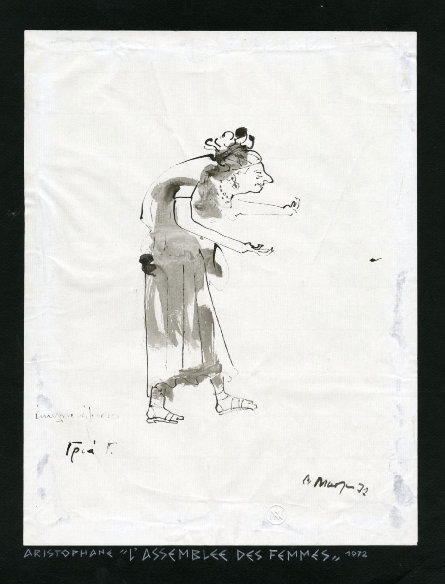 Η έκθεση χωρίζεται σε δύο μέρη: στα έργα από την ενασχόληση του καλλιτέχνη με το Θέατρο (μελέτες και σχέδια κοστουμιών και σκηνικών από παραστάσεις κλασικού και σύγχρονου ρεπερτορίου) και στις εφαρμογές που αφορούν τοιχογραφίες (Πάντειος, Ζωοδόχος Πηγή, Λέσχη Θεοτοκόπουλου), διαφημίσεις (καπνοβιομηχανία Κεράνης) και εικονογραφήσεις (ΑΓΕΤ).