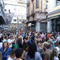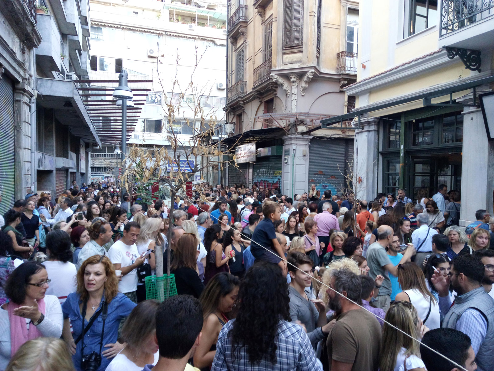 Λίγο μετά τις 8 το βράδυ ο κόσμος που συγκεντρώθηκε στην Πλατεία Εμπορίου ξεκίνησε να κατευθύνεται προς την πεζοδρομημένη παραλιακή Λεωφόρο Νίκης. Εκεί ενώθηκε με εκείνους που είχαν περάσει μία βόλτα από τα Βοροινά, στο Λιμάνι Θεσσαλονίκης, όπως μπορούσε να μυρίσει κανείς και στην ατμόσφαιρα, με τα διάχυτα αρώματα του κρασιού. Σαν όλη η πόλη να είχε συγκεντρωθεί σε έναν δρόμο, σαν να μην είχε μείνει κανείς σπίτι του…
