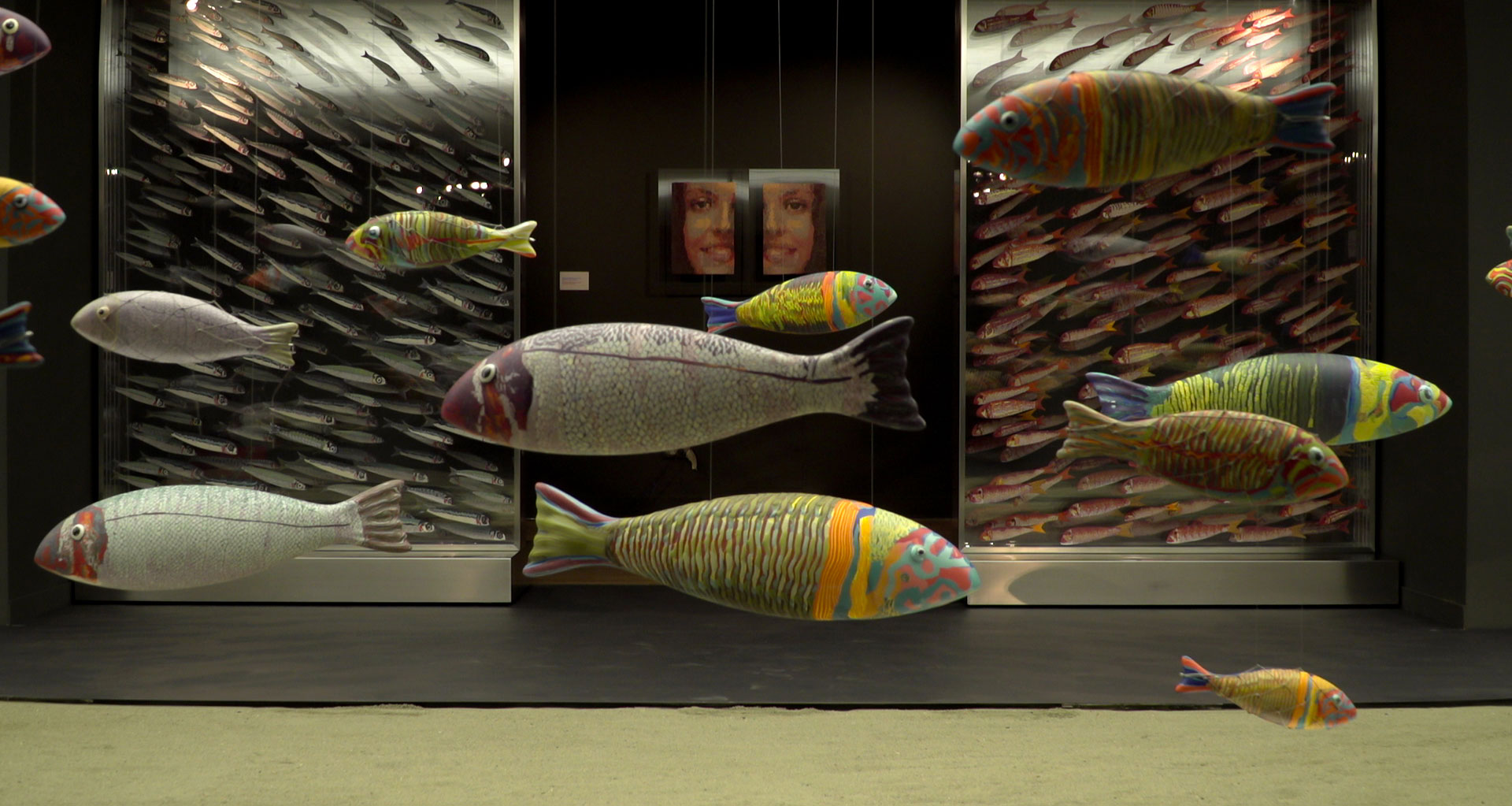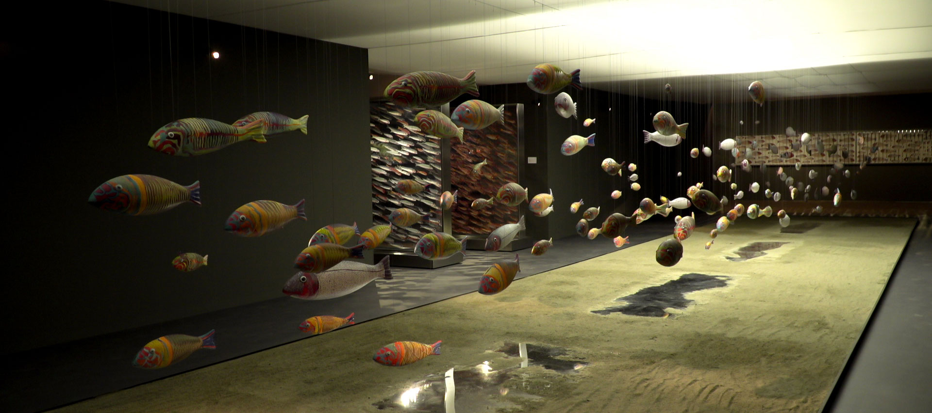 Ενώ, ο επιμελητής της έκθεσης, Τάκης Μαυρωτάς, επισημαίνει: «Η Μαρίτσα Τραυλού ανήκει στην ομάδα εκείνων των σύγχρονων καλλιτεχνών που προτιμά να εργάζεται, με αγνότητα και καθαρότητα, περισσότερο με τη σιωπή του ατελιέ, αποφεύγοντας συστηματικά τη δημοσιοποίηση του έργου της. Έτσι τώρα, ύστερα από πολλά χρόνια επίπονης και ακατάπαυστης άσκησης, εκθέτει για πρώτη φορά στο Μουσείο Μπενάκη μικρές και μεγάλες γλυπτικές φόρμες από χρωματισμένη μάζα πορσελάνης, στους 1250° έως 1260° C, που σε ενότητες ολοκληρώνουν τις ευφάνταστες συνθέσεις της. Η ίδια, βέβαια, γνωρίζει ότι κάθε μεγάλη εγκατάσταση απαιτεί ικανότητα και πείρα για τη συνθετική και τη χρωματική της ολοκλήρωση, την ισορροπία και τη ρυθμική σχηματοποίηση της τελικής εικόνας, όπως η τωρινή της μεγάλη εγκατάσταση στο Μουσείο Μπενάκη, με τα 120 αιωρούμενα ψάρια από πορσελάνη.