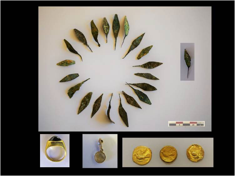 Οι ανασκαφικές τομές επικεντρώθηκαν κυρίως γύρω από το δίχωρο υπέργειο ταφικό μνημείο ρωμαϊκών χρόνων που αποκαλύφθηκε το 2016 και επιβεβαίωσαν τη διαχρονική χρήση του χώρου από τους αρχαϊκούς μέχρι και τους ρωμαϊκούς χρόνους. Αρχικά στα επιφανειακά στρώματα, βόρεια και ανατολικά του ρωμαϊκού ταφικού μνημείου, αποκαλύφθηκε η συνέχεια οργανωμένου νεκροταφείου ρωμαϊκών χρόνων, το οποίο οριζόταν από ταφικούς περιβόλους. Ανασκάφηκαν 14 καλυβίτες κεραμοσκεπείς τάφοι, πολλοί από τους οποίους στο εσωτερικό τους περιέκλειαν περισσότερες από μία ταφές, κτερισμένες με λύχνους, αγγεία και νομίσματα από τον 1ο μέχρι και τον 4ο αι. μ.Χ. Μεταξύ αυτών ξεχωρίζει ενυπόγραφος λύχνος κορινθιακού εργαστηρίου του 1ου αι. μ.Χ., που στο δίσκο του φέρει παράσταση Αφροδίτης με δύο ερωτιδείς.