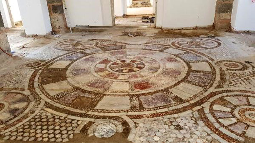 «Τώρα φτιάχνουμε γυάλινο δάπεδο πάνω σε ανοξείδωτο σκελετό που θα δίνει στους επισκέπτες τη δυνατότητα να βλέπουν το ψηφιδωτό, ενώ θα περπατάνε πάνω του και αυτό θα είναι προστατευμένο κάτω από το γυαλί» πρόσθεσε.
