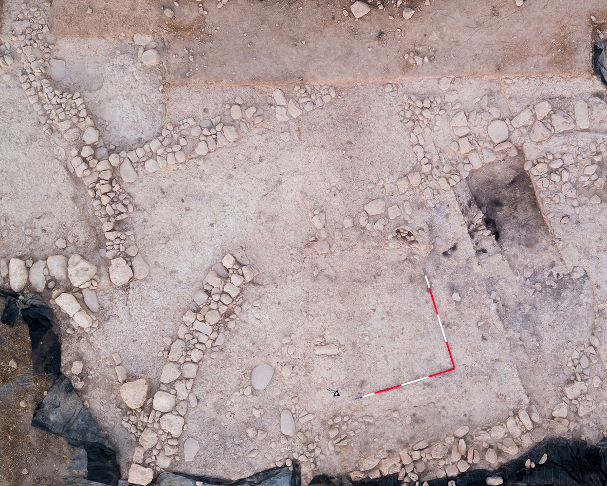 Ο τομέας που ονομάστηκε P/B2 έχει έκταση 55 τ.μ. Δύο μακροί παράλληλοι τοίχοι (διακρίνονται στο πάνω και το κάτω μέρος της εικ. 2) φαίνεται να ορίζουν έναν χώρο, στο εσωτερικό του οποίου βρέθηκαν κατάλοιπα τοίχων και οροφής που κατέρρευσαν, οπότε ο χώρος ήταν μάλλον στεγασμένος. Δοκιμαστική τομή ανάμεσα στους τοίχους αποκάλυψε σε κατώτερα στρώματα κατάλοιπα κατεστραμμένου κτηρίου και εκτεταμένες αποθέσεις στάχτης. Αυτό το κτήριο μιας πρωιμότερης φάσης της Εποχής του Χαλκού φαίνεται να καταστράφηκε εσκεμμένα.