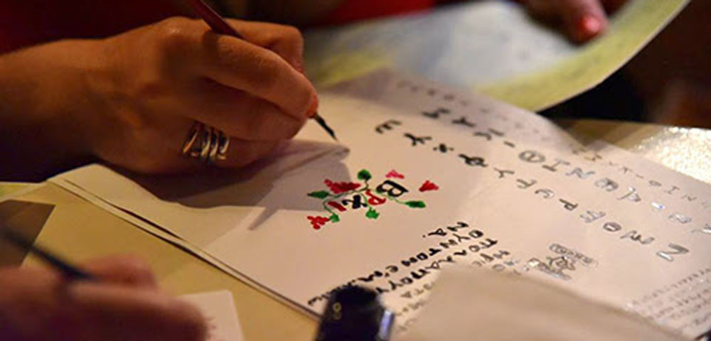Το εργαστήριο, που πραγματοποιείται από την καλλιγράφο Μαρία Γενιτσαρίου, περιλαμβάνει: