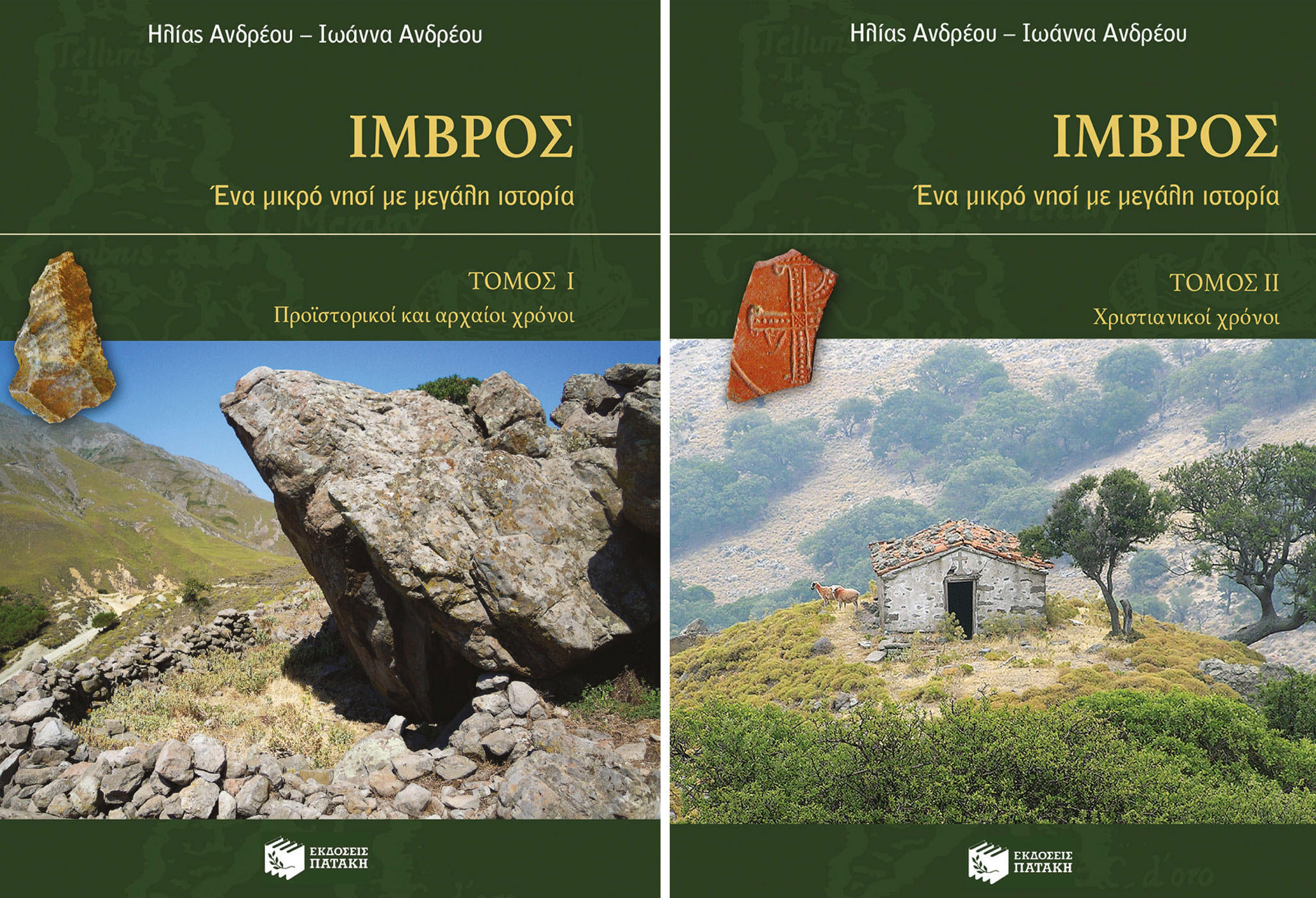 Ηλίας Ανδρέου / Ιωάννα Ανδρέου, Ίμβρος. Ένα μικρό νησί με μεγάλη ιστορία, τόμ. Α’: Προϊστορικοί και αρχαίοι χρόνοι, τόμ. Β’: Χριστιανικοί χρόνοι, Εκδόσεις Πατάκη, Αθήνα 2017, σελ. 520 (α), 320 (β). ISBN: 978-960-16-7675-3