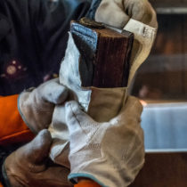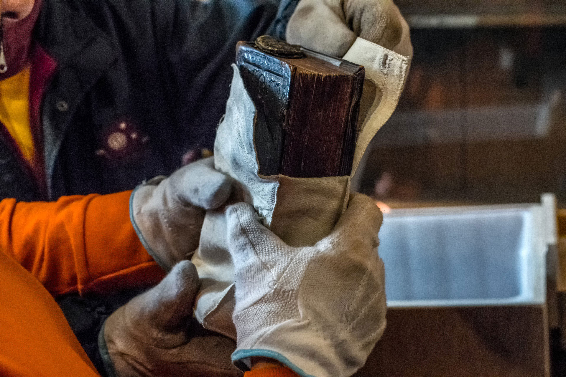 Πέρυσι τέτοια εποχή οι συντηρητές εργάζονταν εντατικά για τη ραδιοσήμανση των βιβλίων προετοιμάζοντας τη μετακόμιση. Φέτος είναι ακόμα στα βιβλιοστάσια και αποσπούν από τη γενική συλλογή τα σπάνια βιβλία και έντυπα ιδιαίτερης παλαιότητας που διαχώρισε ο καθηγητής Αρχειονομίας, Βιβλιοθηκονομίας και Μουσειολογίας του Ιονίου Πανεπιστημίου Γιάννης Κόκκωνας στη διάρκεια της προετοιμασίας. Τα τοποθετούν σε συγκεκριμένο χώρο ώστε να φύγουν ξεχωριστά από τη γενική συλλογή επειδή θα μπουν στο θησαυροφυλάκιο. Η έκφραση της Χριστίνας Τσαρουχά φωτίζεται όταν μιλά για την εμπειρία της μετεγκατάστασης. «Δεν είναι μόνο η μετακόμιση αλλά όλη η διαδικασία της μετάβασης της ΕΒΕ στη νέα εποχή. Βλέπεις τη δουλειά τόσων χρόνων συγκεντρωμένη, έτοιμη να ενταχθεί στις νέες συνθήκες. Στη διάρκεια της προετοιμασίας αποκτήσαμε μια πολύ καλή εικόνα για την κατάσταση των συλλογών, οπότε πλέον γνωρίζουμε τις ανάγκες ώστε όταν μεταφερθούν όλες οι συλλογές να αρχίσουμε σταδιακά τις εργασίες συντήρησης. Το εργαστήριο συντήρησης είναι πλήρως εξοπλισμένο, τελευταίας τεχνολογίας. Κι είναι σημαντικό ότι σχεδιάσαμε εξ αρχής τα εργαστήριά μας, επιλέξαμε τους χώρους που θέλουμε τα μηχανήματα, τους πάγκους που θα δουλεύουμε. Είμαστε εννέα συντηρητές και σίγουρα χρειαζόμαστε κι εμείς μια περίοδο προσαρμογής στο νέο χώρο. Νομίζω όλοι οι υπάλληλοι της Εθνικής Βιβλιοθήκης της Ελλάδος έχουν ανάγκη ένα χρονικό περιθώριο για να εγκλιματιστούν στη νέα κατάσταση».