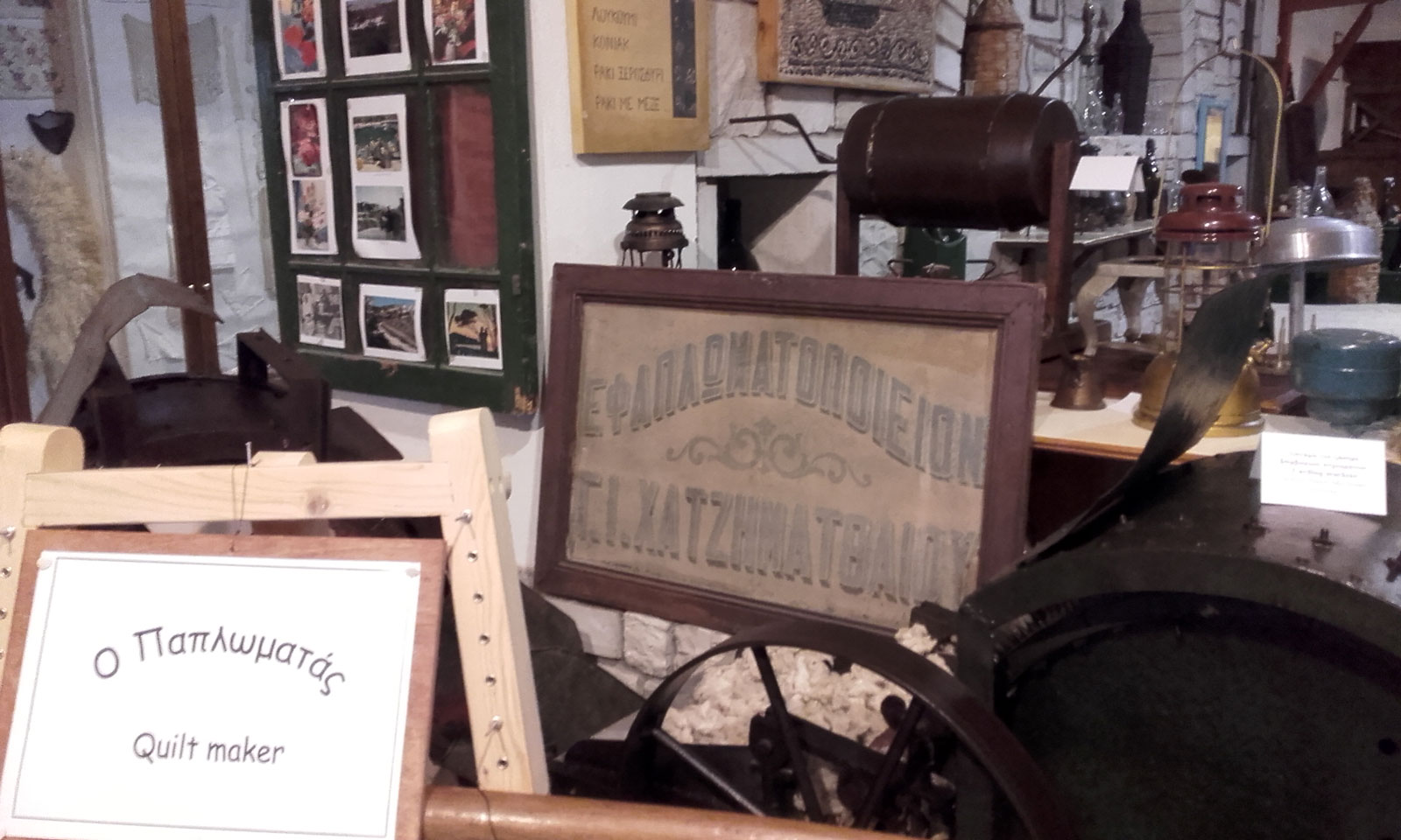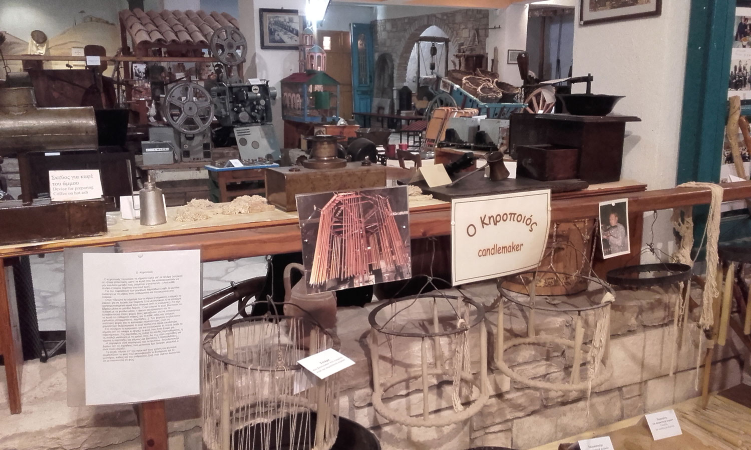 Τα εκθέματα, που συγκεντρώθηκαν και φιλοξενούνται, είναι υλικά και εργαλεία 30 και πλέον επαγγελματιών και δραστηριοτήτων του νησιού. Επίσης, εκτίθενται βιβλία, έντυπα, φωτογραφίες, εφημερίδες, καρτ ποστάλ, νομίσματα, είδη ρουχισμού κ.ά.