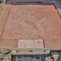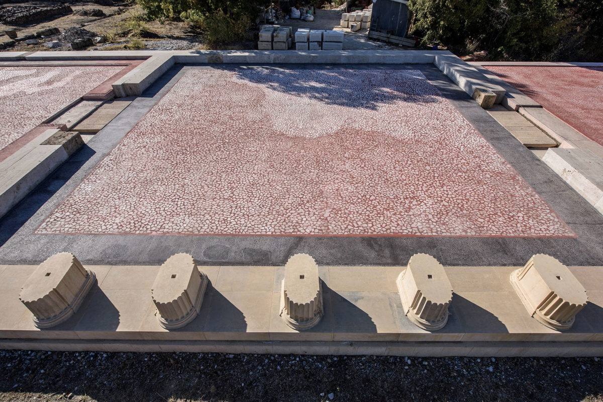 Στο σημείο αυτό της Βεργίνας, στο υπερυψωμένο τμήμα της πλαγιάς όπου χτίστηκε το ανάκτορο στα χρόνια του Φιλίππου Β’, μόλις βελτιωθεί ο καιρός, στις αρχές του Μαΐου, θα ξεσκεπαστούν τα περίφημα ψηφιδωτά με τις κόρες και τα λουλούδια και την αρπαγή της Ευρώπης, ώστε ο χώρος να ανοίξει για το κοινό, εφόσον διευθετηθούν τα ζητήματα με την κυκλοφορία στον στενό ανηφορικό δρόμο. Εκεί ο επισκέπτης θα μπορεί να δει το μεγάλο, ήδη αναταγμένο κομμάτι του μνημείου, αλλά και τις αναστηλωτικές εργασίες που παρουσιάζουν μεγάλο ενδιαφέρον.