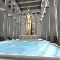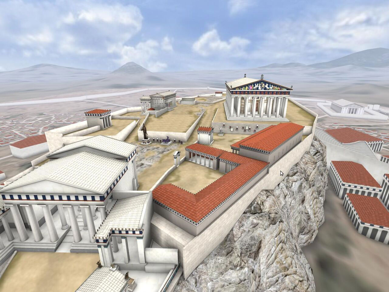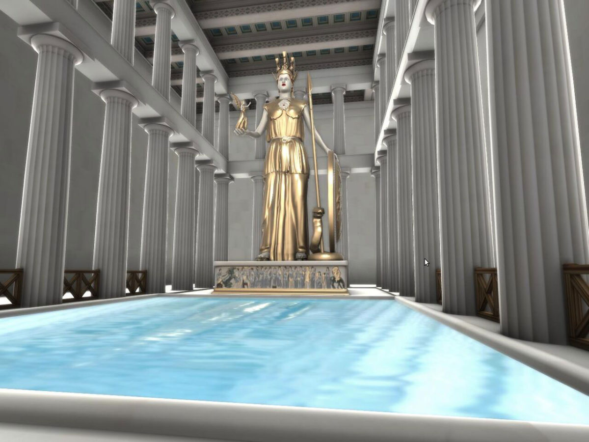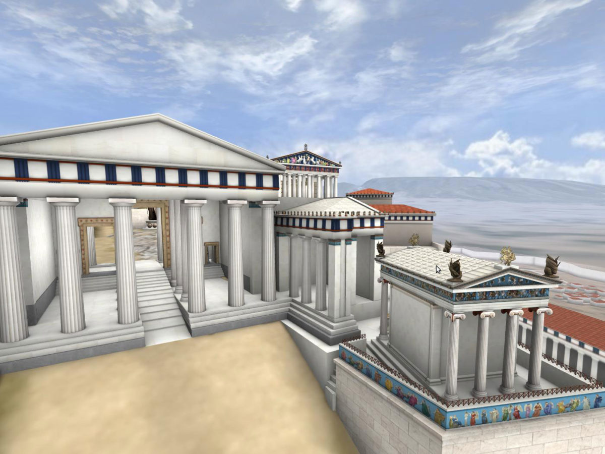 Παράλληλα, παρουσιάζονται ναοί και αγάλματα τα οποία δεν διασώζονται μέχρι σήμερα, όπως το Αρρηφόριον, το Ιερό του Διός Πολιέως, το Ιερό της Αρτέμιδος Βραυρωνίας, η Χαλκοθήκη, ο γλυπτός διάκοσμος του Παρθενώνα με το χρυσελεφάντινο άγαλμα της θεάς Αθηνάς κ.ά.