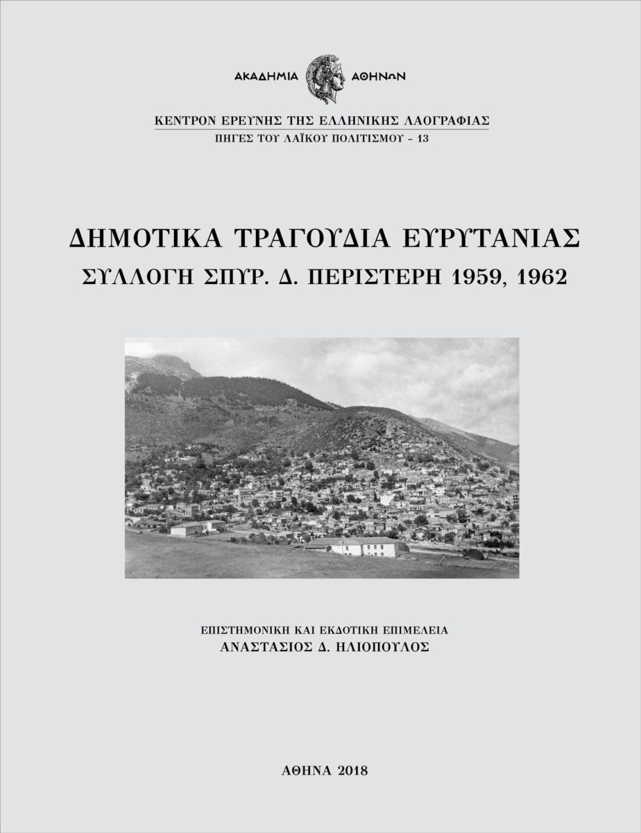 Δημοτικά τραγούδια Ευρυτανίας. Συλλογή Σπύρ. Δ. Περιστέρη 1959, 1962, επιστημονική-εκδοτική επιμέλεια: Αναστάσιος Δ. Ηλιόπουλος, επιμέλεια-ηλεκτρονική επεξεργασία της μουσικής ύλης: Ζωή Αναγνωστοπούλου, επιστημονική υπεύθυνη, πρόλογος: Αικατερίνη Πολυμέρου-Καμηλάκη, υπεύθυνος εκδοτικής σειράς: Ευάγγελος Θ. Καραμανές, Σειρά «Πηγές του Λαϊκού Πολιτισμού» αρ. 13, Κέντρον Ερεύνης της Ελληνικής Λαογραφίας της Ακαδημίας Αθηνών, Αθήνα 2018, σελ. LXXII + 542 (11 CD, 1 DVD), ISBN: 978-960-404-332-3