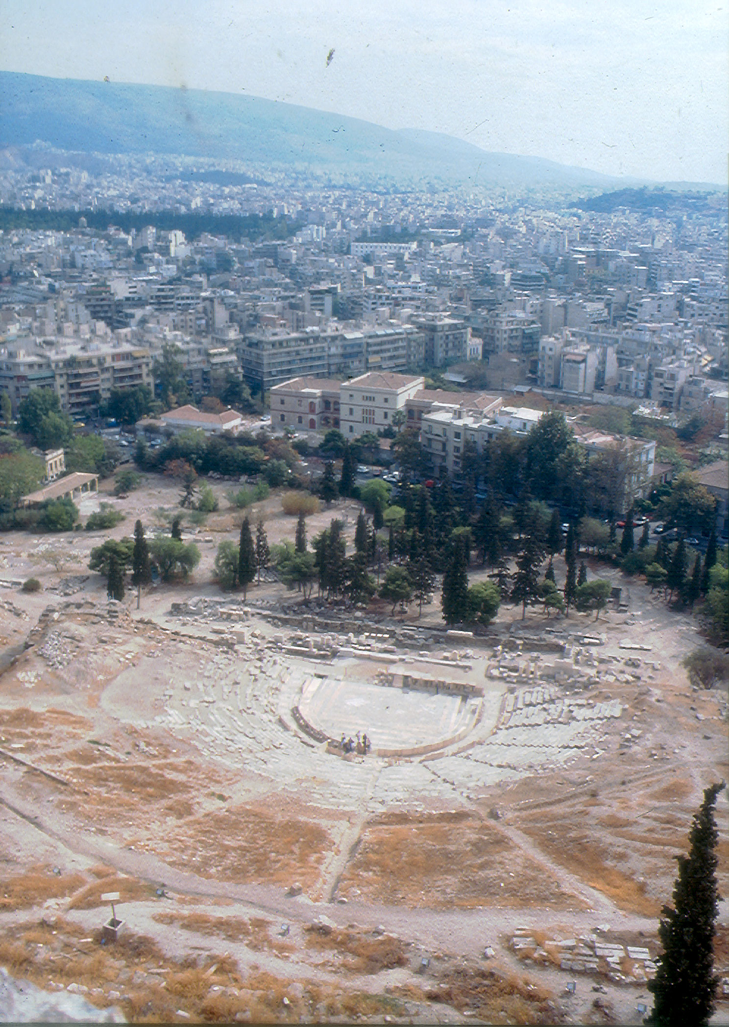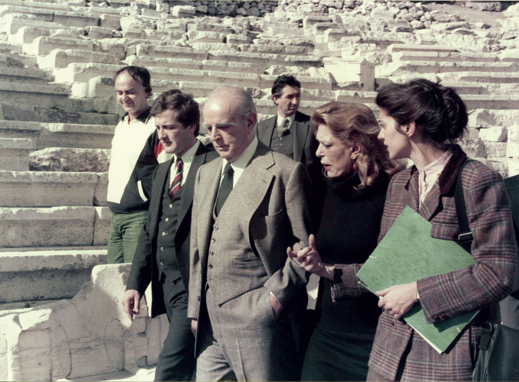 Θα μπορούσε να θεωρηθεί ότι εκείνη την εποχή η επίσκεψη στον αρχαιολογικό χώρο του Προέδρου της Ελληνικής Δημοκρατίας, Κωνσταντίνου Καραμανλή, και της Υπουργού Πολιτισμού Μελίνας Μερκούρη (εικ. 1), ήταν αξιοπρόσεκτη. Αιτία της επίσκεψης ήταν η δυνατότητα χρησιμοποίησης του Θεάτρου του Διονύσου για ορισμένες παραστάσεις, με την προσθήκη μερικών σειρών καθισμάτων (πάγκων) στο κοίλο, για την οποία είχε ζητηθεί η γνώμη του αρμόδιου επιστημονικού-υπηρεσιακού φορέα, δηλαδή της Εφορείας Ακροπόλεως και της Επιτροπής Συντήρησης Μνημείων Νότιας Κλιτύος. Οι παραστάσεις θα εντάσσονταν στις εορταστικές εκδηλώσεις για τον ορισμό της Αθήνας ως Πολιτιστικής Πρωτεύουσας της Ευρώπης το 1985 (σημ. 3).